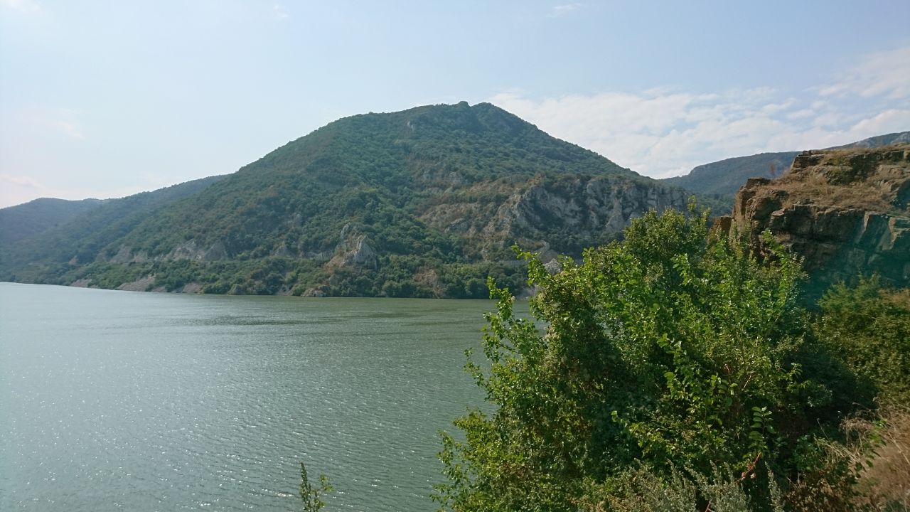 Später dann war das Ufer von Hotels und Pensionen gesäumt, ein bisschen wie früher in Jugoslawien die Küstenstraße. Der Donaudurchbruch war dann beeindruckend, auch weil der Fluss vorher fast wie ein See wirkte. Leider gab es keinen schönen Aussichtsplatz. Einen guten Kilometer weiter liegt das Kloster und kurz danach folgt das in den Felsen geschlagene Antlitz eines alten Herrschers. Hier war Halligalli wie am Ballermann! Via Intercom haben wir dann kurz besprochen, dass wir lieber weiterfahren und auf den Trubel bei 35 Grad verzichten. Dann gings es bei Orschowa wieder ins Innenland Richtung Herkulesbad zu unserer Unterkunft. Da Peter diesmal den Wegpunkt nicht genau gesetzt hat waren wir zunächst etwas orientierungslos. Aber Fragen kann helfen und so sind wir dann doch beim Hotel angekommen. Nach dem Reinfall gestern wieder eine feine Unterkunft, tolle Zimmer, nette Wirtsleute und sogar mit Pool und gekühlten Getränken. Zum Essen waren wir aushäusig, es gab Spaghetti und dazu jeweils einen Salat. Die Krönung war die selbstgemachte Limonade, davon brauchten wir jeweils 2 Gläser gegen den Durst, einfach lecker! Morgen wird’s eine kurze Etappe von ca. 130 km, eventuell noch teilweise geschottert, aber es wird kein langer Fahrtag werden. Also auch etwas länger schlafen