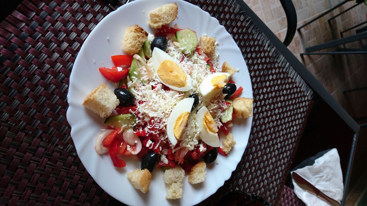 Nach der Grenze waren es noch knapp 50 km bis zur Unterkunft, einem Motel mit Tankstelle dicht an der Straße im Örtchen Biled. Die Zimmer sind soweit okay, aber Peter musste noch einmal zur Rezeption und meckern, weil kein Wasser aus den Hähnen kam. Auch das klappte dann. Leider gab es kein Restaurant und auch der Erkundungsgang ins Dorf war essentechnisch nicht erfolgreich. Also kurz in das Magazin Mix rein und Getränke (kein Bier!) und für mich Tucs und für Peter ein Erdbeercroissant gekauft.