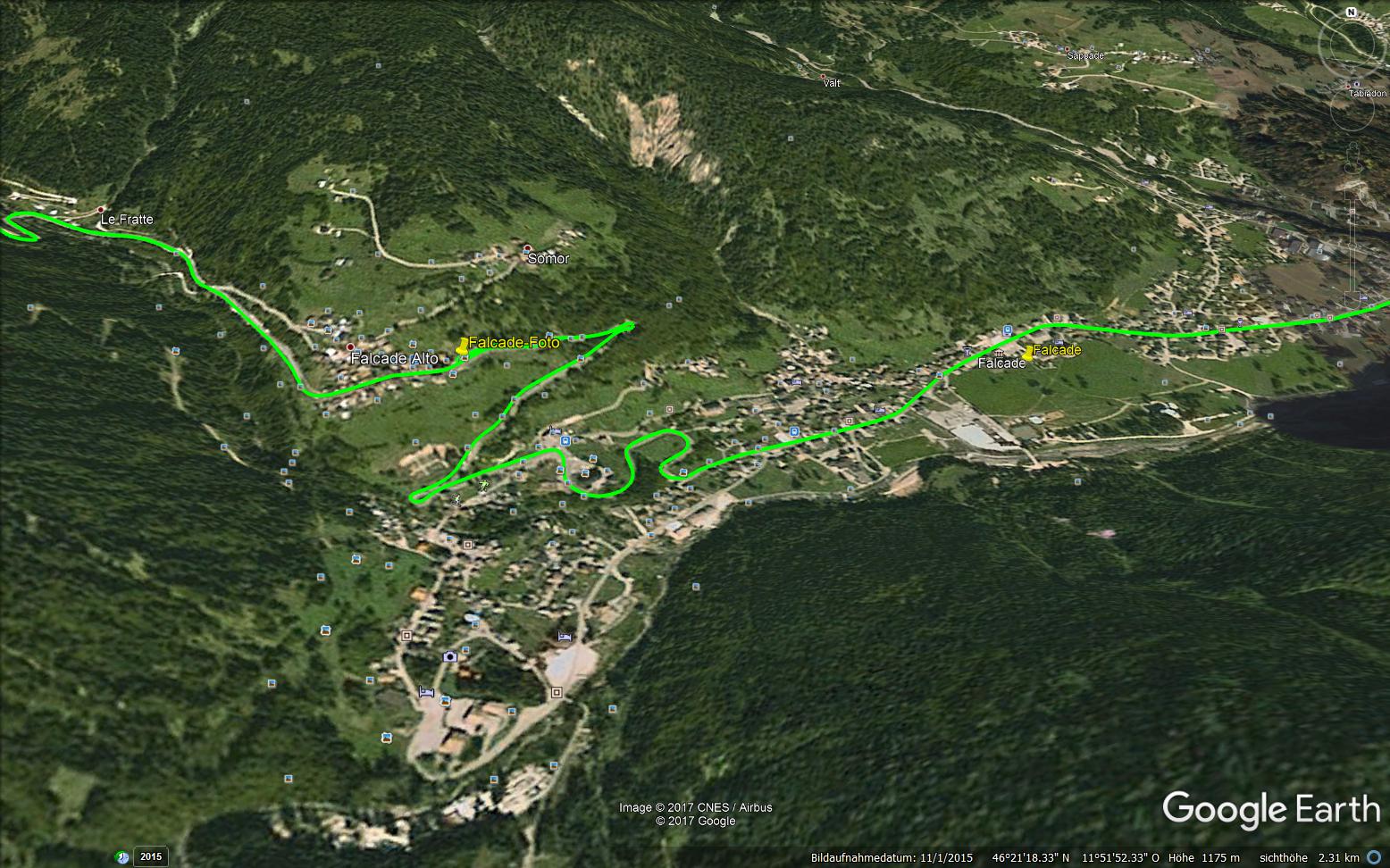 Stelle sein, von der aus ich die Aufnahme machte. Das wäre auf 46°21'20.25"N - 11°51'33.50"E, dort wo in der linken