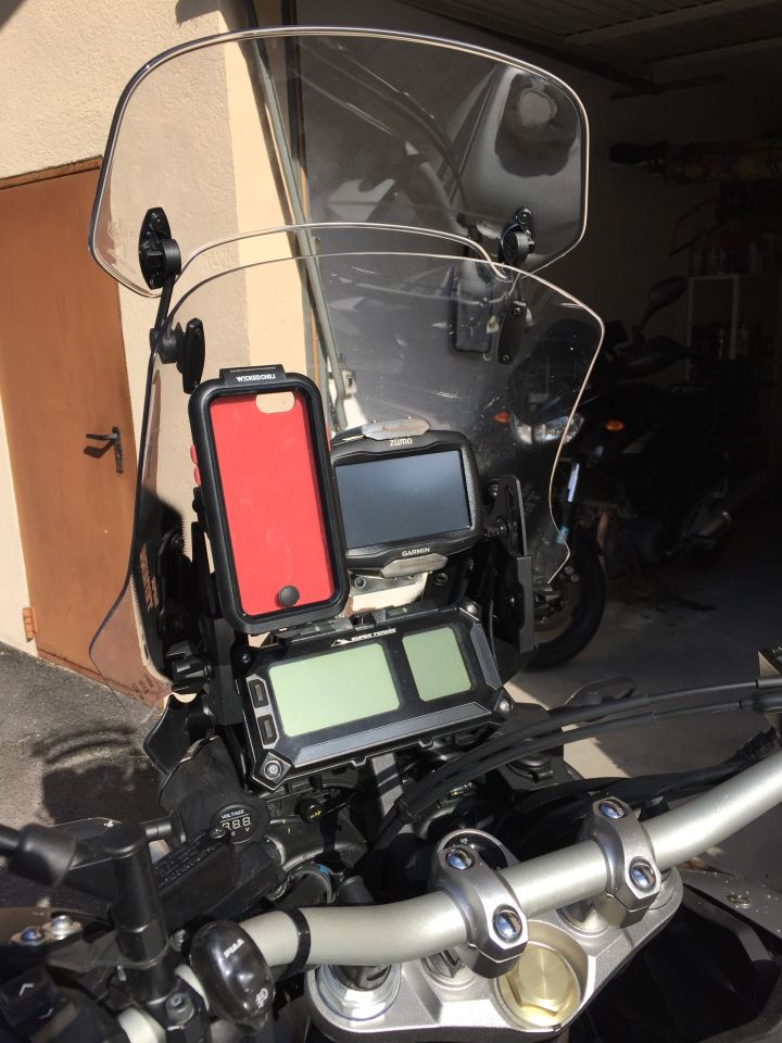 Ich habe zum Glück noch nie Probleme mit der Ablesbarkeit gehabt. (Handy ist in einer Givi-Tasche)