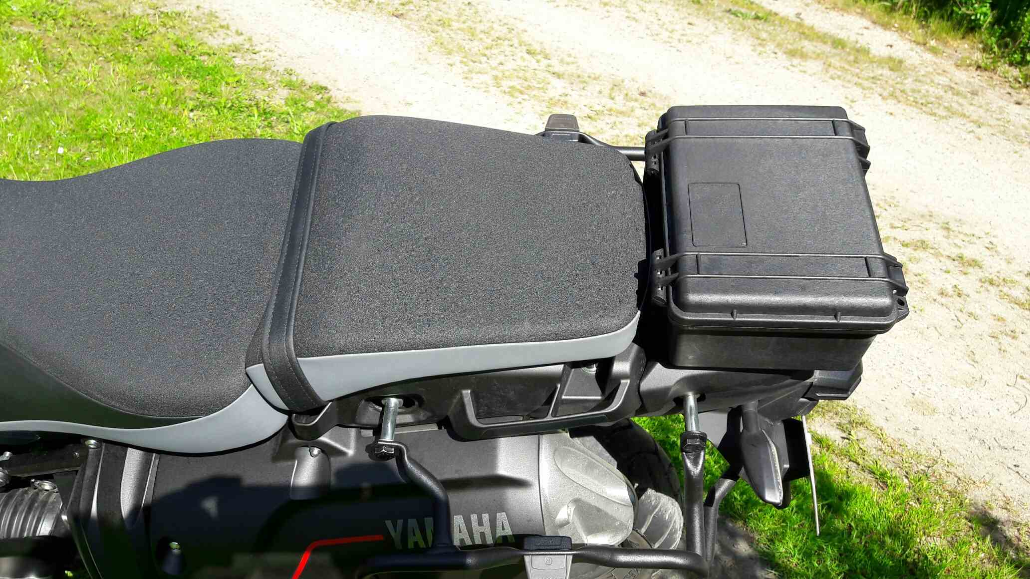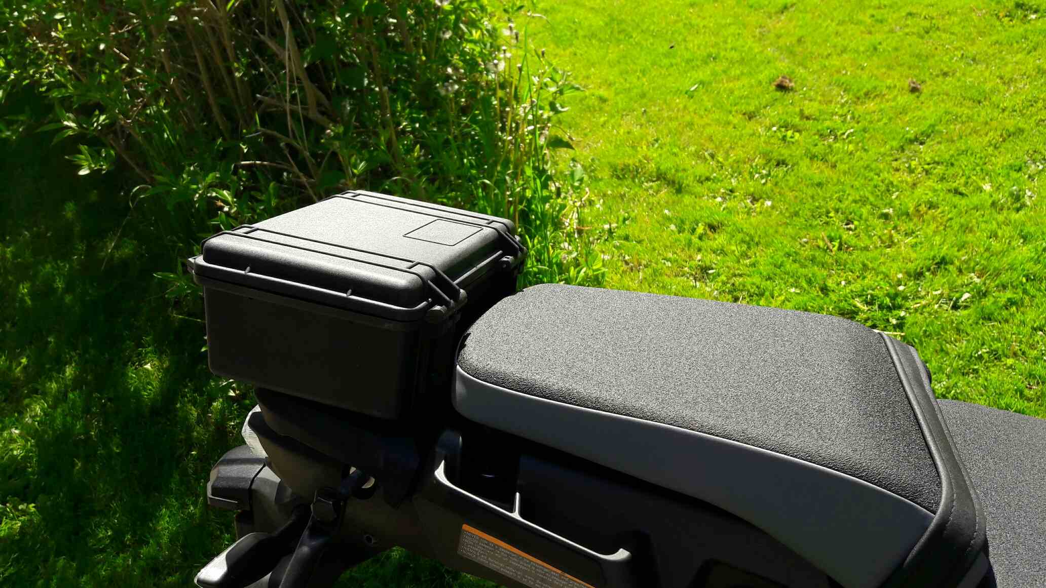 Moin - so jetzt wieder en paar Zeilen auf Touristdeutsch aus Dänemark. Diese Idee kam eigentlich von ein andere XTZ-fahrer in Dänemark, ich fand es aber so gut, dass ich es auch gemacht habe :-) . Diese mini-topbox kann mit nur drei Schrauben montiert werden (die Gewinde sind doch schon da, man muss nur drei Löcher boren) und kostet ca. 50 Euro (es heisst Peli Case 1150; gibt es mehr oder weniger überall zu kaufen glaube ich). 100% wasserdicht und gut für Werkzeug, Handy, Lesebrillen, Glühbirnen etc. etc.