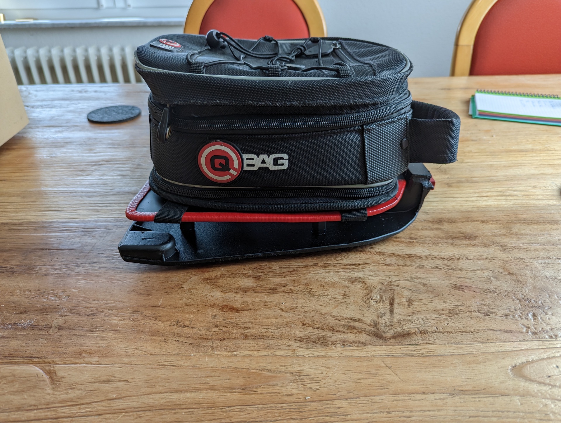 Die originale Gepäckbrücke taugt zur Topcase Befestigung leider wenig. Es gibt zum Glück bessere zum Nachrüsten, dann sitzen auch große Schminkköfferchen stabil.