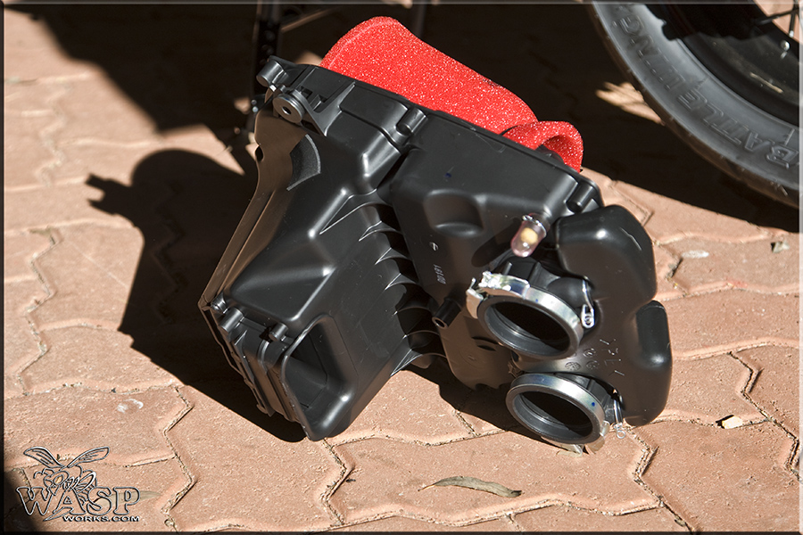 Der Lufteinlass geht doch - wie man den Bildern entnehmen kann (danke WASP) - schräg nach hinten/unten weg und wird vom Zylinderkopf doch auch noch geschützt. Möglicherweise wird hier nicht das Spritzwasser angesaugt, sondern es entstand einfach viel Kondenswasser? Da hätte ich mehr bedenken, falls ich das Bike wieder einmal wasche, dass ich mich mit dem Schlauch in einem "falschen Winkel" nähere. Ich hoffe, dass sich nach dem Wechsel des Filters der Trinkkonsum wieder normalisiert.