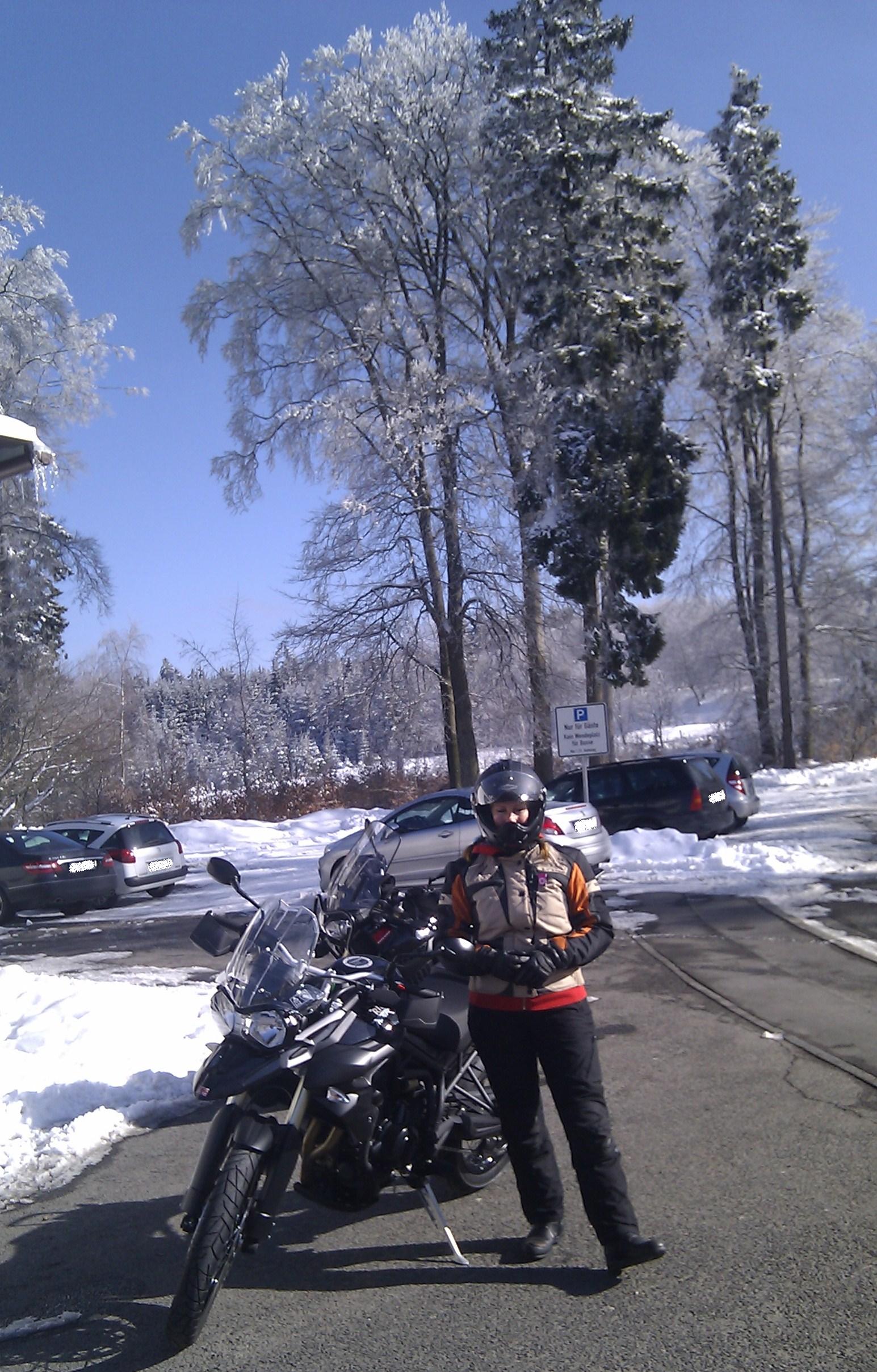 Gestern den ersten Ausritt in die wunderbar verschneite Gegend des Taunus/Felbergs gemacht. Allerdings sind wir nicht ganz hoch gefahren sondern sind am Sandplacken weiter Richtung Schmitten. Es hatte so 2-3 Grad aber sah toll aus: Blauer Himmel, alles tief verschneit und die Strassen waren im Wesentlichen trocken... Nach einer Stunde war ich aber auch wieder froh, im Warmen zu sein
