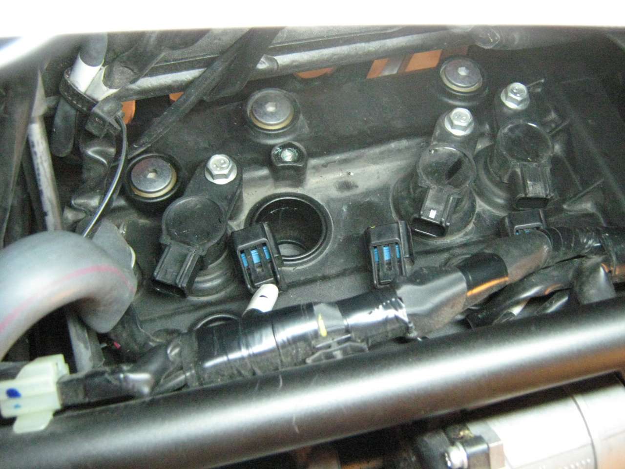 mit dem Seitenständer ist auch schlecht, da die Befestigungsdome und die breiten Gummidichtungen der Zündkerzenstecker das Wasser nicht ablaufen lassen.