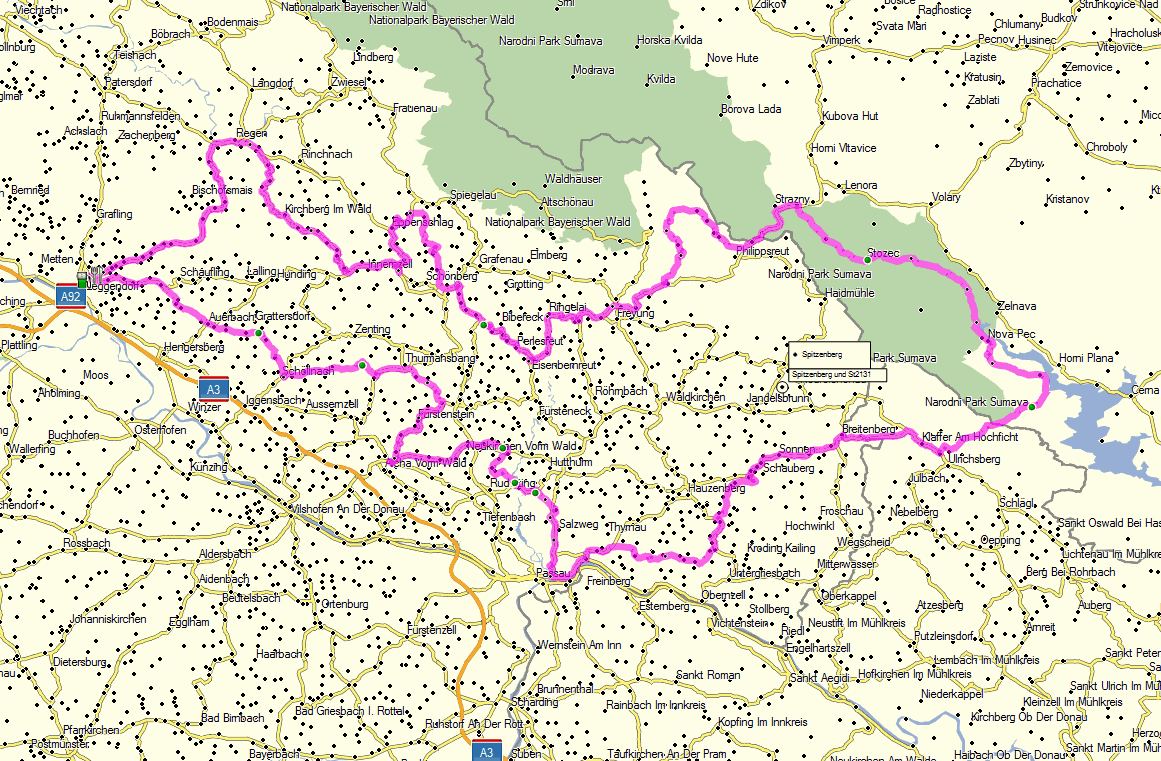 Zwischen den ersten beiden Sätzen habe ich da mal 300 km im Bayerischen Wald (Deggendorf-Deggendorf) zusammengeklickt. Bei Interesse würde ich dazu eine neue Tour aufmachen.