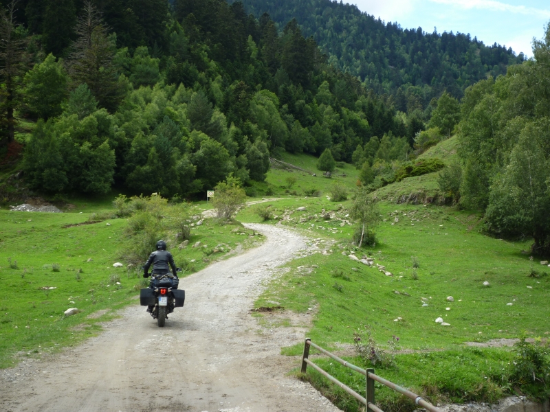 Um 9:00 sitzen wir auf dem Mopped und knüdeln erstmal aus Luchon Richtung Norden über die D125 bis nach Saint-Beat. Ab hier beginnt der Wahnsinn:!: : D44 mit Col de Ment, D618 mit Col de Portet d'Aspet, D17 mit dem Vallee de Bethmale und dem Col de la Core, D3 & D8F mit Col de Latrape, Col d'Agnes und Port de Lers,...alles kleine und kleinste, gewundene, gekringelte und gekräuselte Sträßelchen. Ich komme aus dem Schwärmen nicht raus und deshalb kann ich Euch leider auch nicht mit einer Batterie an Fotos verschonen: