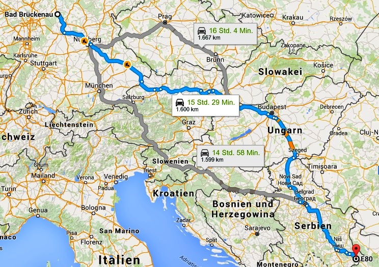 Orhun ist noch in Ungarn, seiner Dicken und Ihm geht's gut. Er hat noch etwa 1000km vor sich und will zum Abendessen in Bad Brückenau auflaufen.