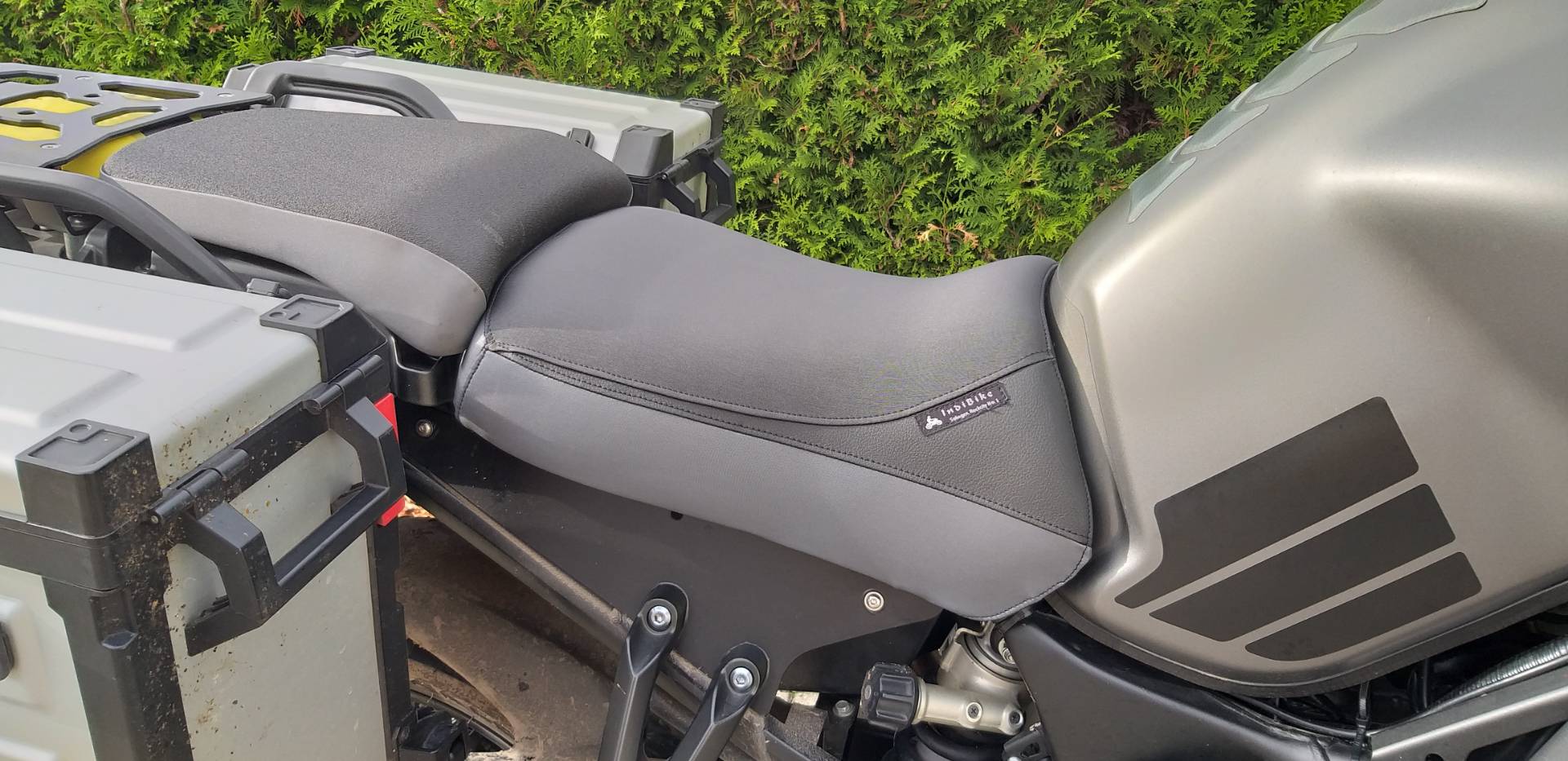 Nach einigen Anschreiben von Sattlern, die dieses System einbauen, bin ich bei Uwe von "indibike" www.facebook.com/indibikeunikat hängen geblieben. Im September 2019 hatte ich dann einen persönlichen Termin in Solingen ausgemacht. Freitag bin ich angereist, habe übenachtet und am nächsten Tag so kurz nach 9 Uhr bin ich bei ihm aufgetaucht. Nach kurzem plauschen, gings an den Sitz. Ich muss dazu sagen, ich habe zwei Sitze, einen flachen, der wurde umgeändert und meinen originalen Sitz. Uwe hat den Sitz komplett auseinander genommen, dabei zeigte sich auch, dass die Idee mit dem Gel nicht besonders gut umgesetzt wurde. Er schnitt, klebte, wir probierten an, wieder runter, noch was geändert wieder probiert usw. So ging das eine Weile bis wir beide mit der Form und der Höhe zufrieden waren. So vergingen ca. 2-3 Stunden. Dann war das wichtigste gemacht und ich konnte mich mit meinem originalen Sitz auf die Heimfahrt machen. Nach ca. eineinhalb Wochen kam die Mail, dass der Sitz fertig ist. Seitdem fahre ich den Sitz, allerdings noch nicht angeschlossen, das mache ich dann in der Winterpause. Vom Sitzkomfort her kann ich sagen: einfach Klasse. Touren mit 400km - 600km Länge kein Problem. Natürlich muss sich der Popo erst daran gewöhnen, das ging aber richtig schnell.