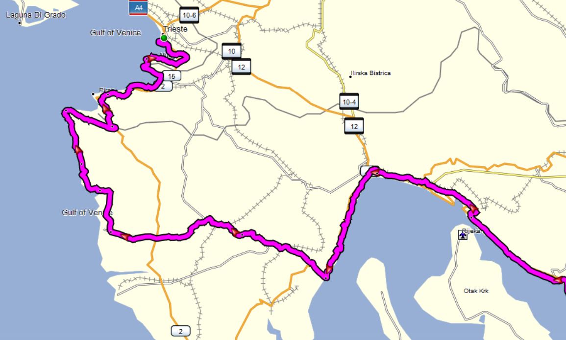 Jetzt habe ich auch die restlichen 270km in Istrien gefunden und habe die 1.035km erreicht: