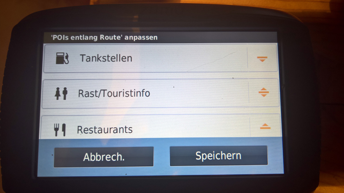 Im den Beispielfotos habe ich natürlich nicht die "Restaurants" sondern "Parken" durch "Rast/Touristinfo" ersetzt.