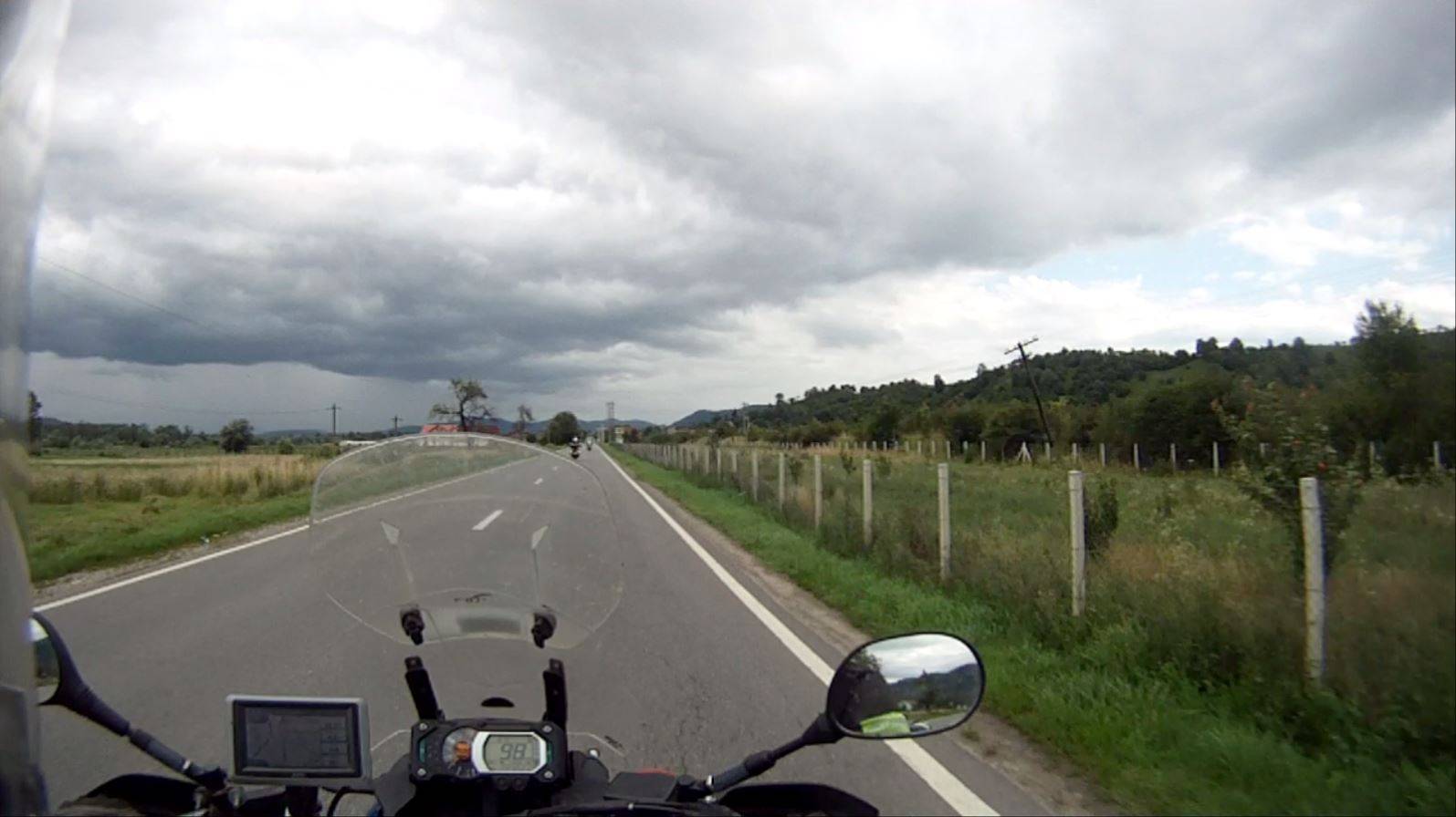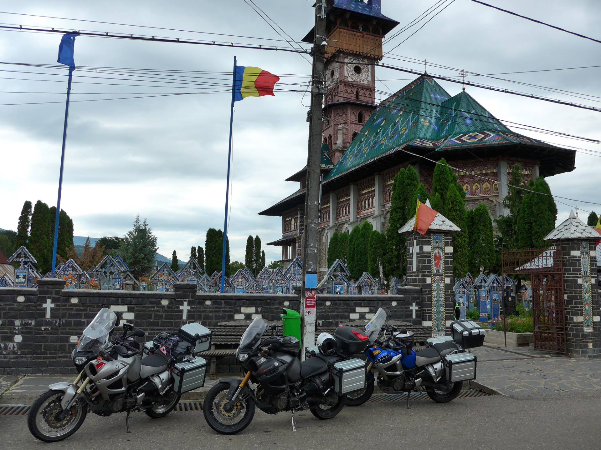Die Abfahrt in die Grenzregion zur Ukraine machte auch richtig Spaß. Kurz danach konnte man den Grenzfluss zur Ukraine sehen, hatte schöne Einblicke in die Ukraine und schnell war Sapânta erreicht. Den lustigen Friedhof schauten wir von außen an und warfen noch einen Blick auf die Stabkirche, die 1km nördlich lag. Auf dem Weg Richtung Sighetu Marmatiei war ein dickes fettes Regensystem nicht zu übersehen. Mein erster Gedanke war: Fahren wir da rein oder zieht das Ding von uns weg? Wir sind zum Glück nicht in den Regen gefahren, aber von weitem konnte man schon sehen, dass es dort kübelt wie aus Eimern. Für heute hatte dieses Regensystem keine Auswirkung auf uns, aber das sollte sehr bald ändern.