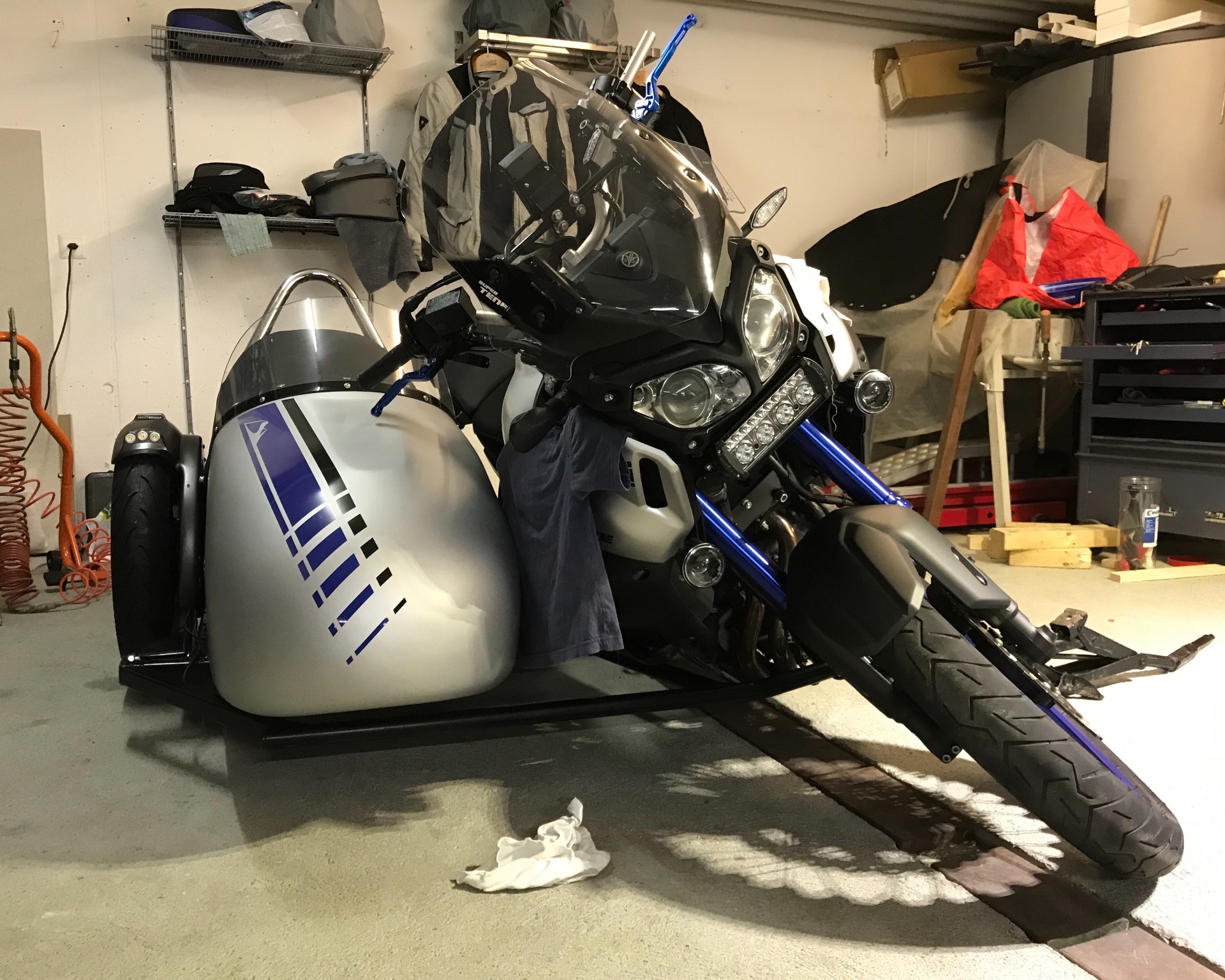 Der Magura-Lenker hat zwar mehr Schräglage gebracht, aber nur, wenn der Lenker gerade ist. Bei vollen Einschlag nach rechts berührt er, bzw. der Bremshebel, wegen der anderen Kröpfung, die Scheibe von Beiwagen
