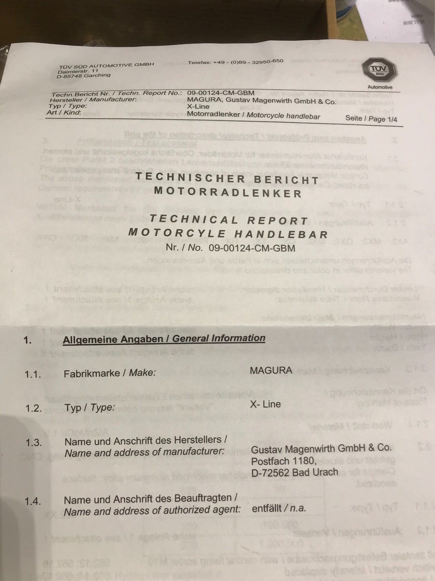 Kannst Du mal ein Foto von der ABE hier einstellen. Magura gibt für gewöhnlich lediglich ein Teilegutachten bei Versand des Lenkers bei.
