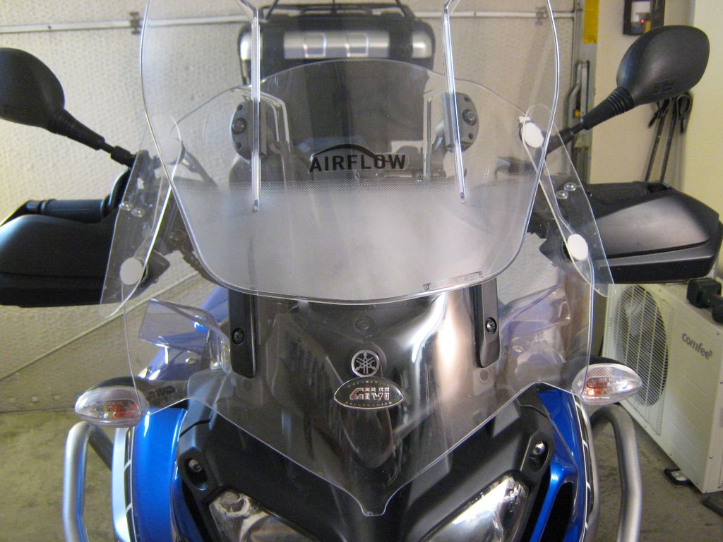 Ich habe die Givi Airflow mit der verstellbaren Scheibenhalterung von Touratech montiert.