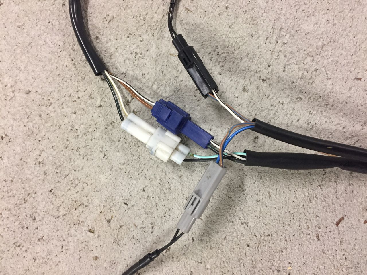Bei mir sieht es so aus, das ich das rote Kabel der Griffheizung am schwarz-grünen Kabel des blauen Steckers angeschlossen habe. Eigentlich! Denn irgendwie war mir das noch zu viel Kabel. schwarzer/grauer/blauer/weisser Stecker. darum hab ich den Weiterverlauf des schwarz-grünen Steckers genommen und bin auf einen weiteren Stecker gestossen, an dem alle 4 zusammenlaufen. Auf der Gegenseite habe ich wieder unseren alten Freund (schwarz-grün) gefunden. Wie man auf dem Foto hoffentlich sieht, habe ich das Kabel aus dem 4er Stecker gezogen und habe das rote Kabel der Griffheizung dort angeschlossen. Und der positive Nebeneffekt ist (Riesendusel, denn Dr.Biber hat von elektrischen Sachen soviel Ahnung wie von schweizer Uhrwerken, nämlich zero-Ahnung