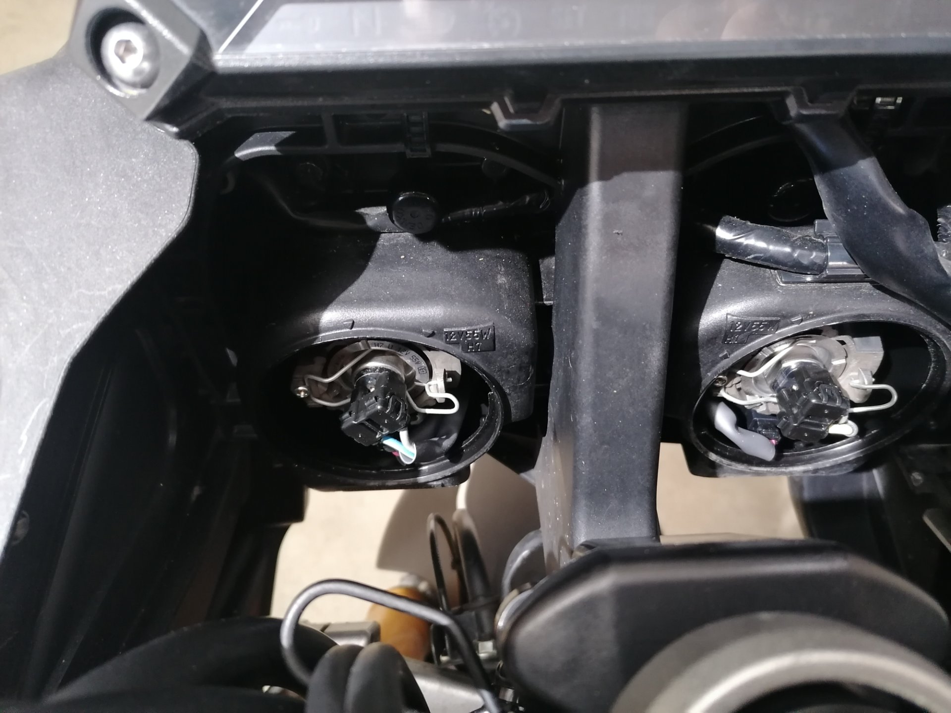 Beim Ausbauen der alten Halogenlampen ist mir aufgefallen, das die rechte H7 irgendwie verdreht in der Halterung steckte. :denker: