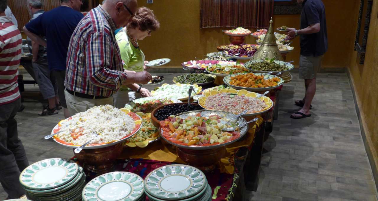 Wenige Kilometer weiter erreichten wir unser Etappenhotel Kenzi Azghor. Das Abendessen war wie immer.