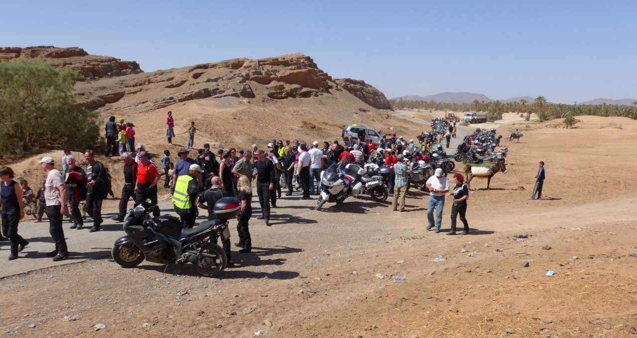 Ziel des Tages war Erfoud bzw. das Kasbah-Hotel Xaluca Maadid. Dieses Hotel beherbergte zu Zeiten der alten Rallye Paris-Dakar den Rallye-Tross. Mit Besichtigung der Todra-Schlucht sollte die Etappe ca. 230km lang sein. Die ersten 50km bis Tinerhir waren in einer halben Stunde abgespult. Für die nächsten 15 km bis zur engsten Stelle der Schlucht benötigten wir weitere 30 Minuten. Die Zufahrtsstraße wurde gerade erneuert und wir fuhren von einer Baustelle zur nächsten.