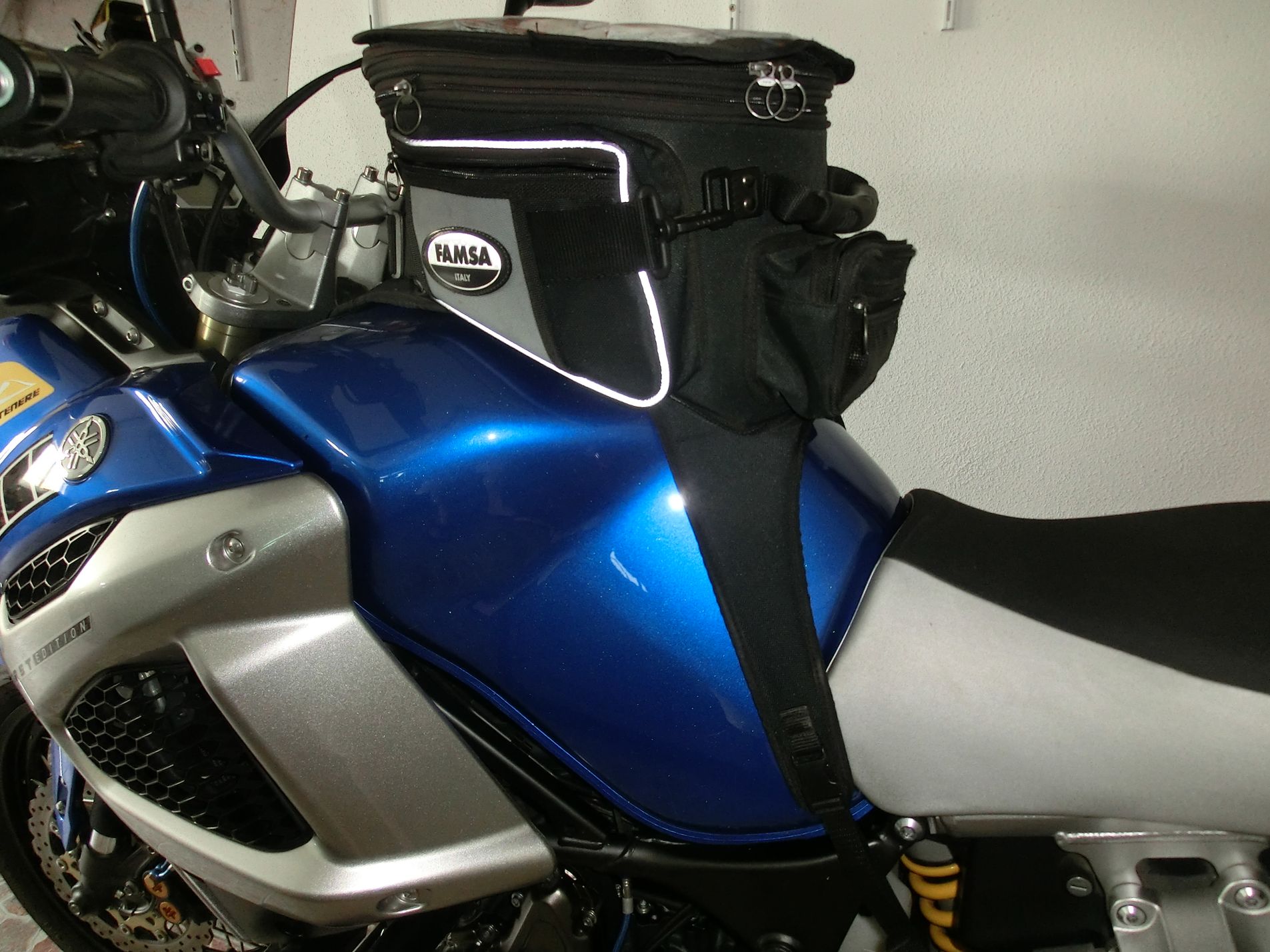 Die Grundplatte wird mit Riemen aufgeschnallt, und auf die Grundplatte per Reissverschluss der eigentliche Rucksack. Keine Bedenken bei einer auf dem Lack aufliegenden Grundplatte! - die ist so weich gestaltet, dass nichts passiert. Es gibt (mittlerweile) viele modellspezifische Grundplatten, auch für unsere 12er XT. Meine Grundplatte ist glaube ich von der 660er, passt aber wunderbar. Und mittlerweile gibt es auch eine Version mit (abnehmbarem) grossem Kartenfach ("FAMSA Enduro Adventure"), die meiner noch nicht hat. Das grosse Kartenfach auf den Bildern ist ein Zubehörteil von Louis, das ich mir selbst draufgebastelt habe.
