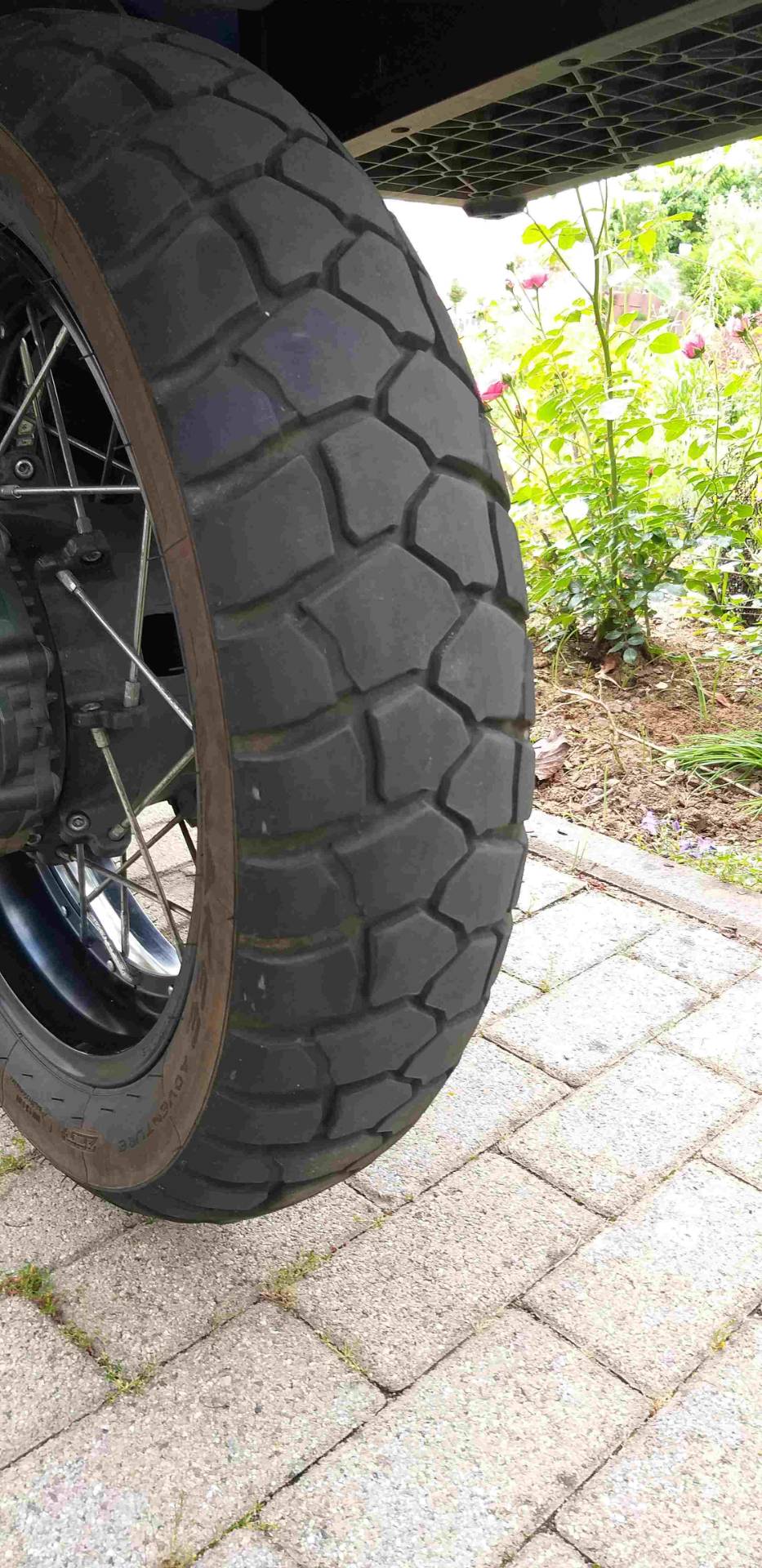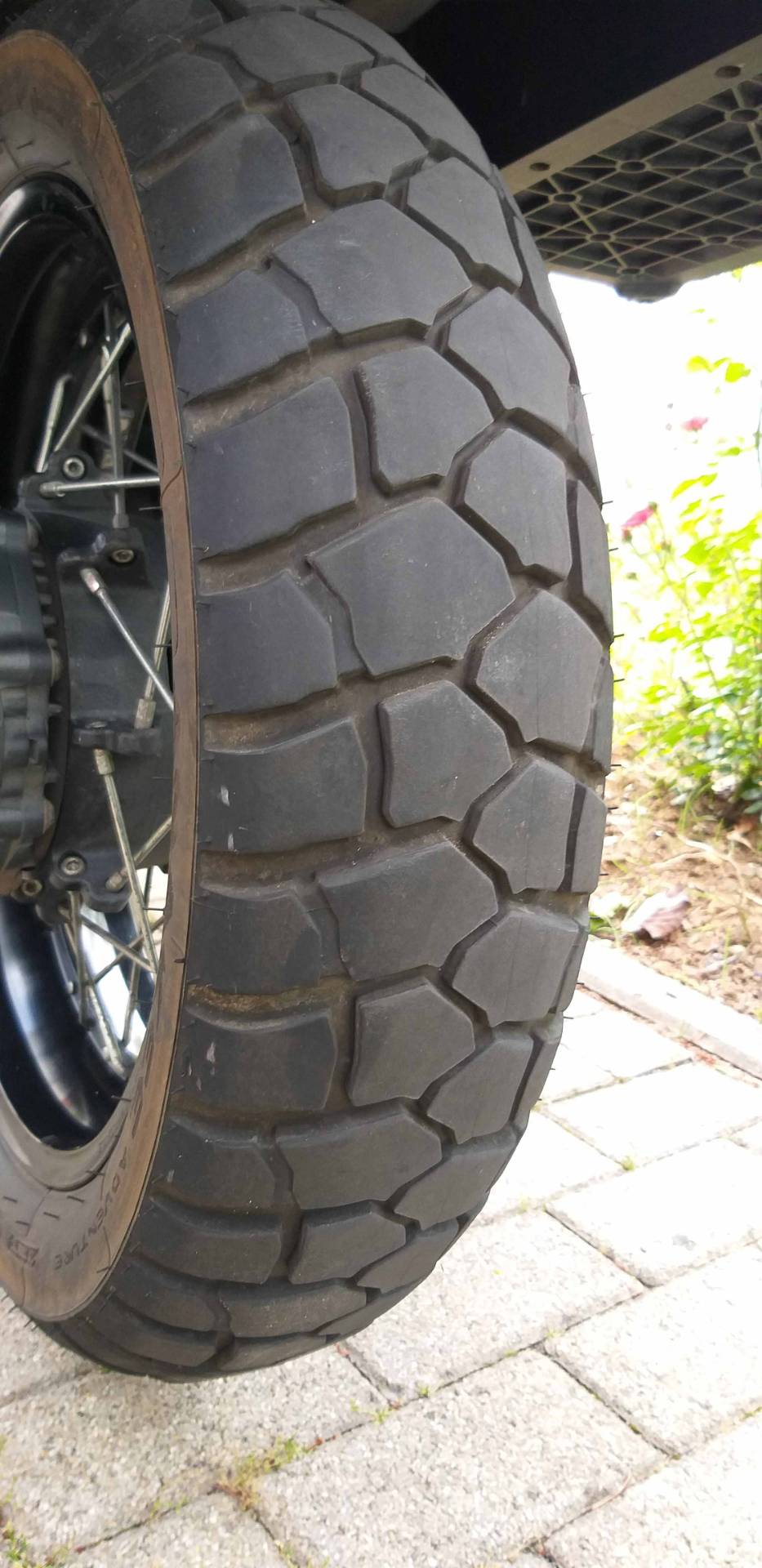 Bis jetzt sind's knapp 2000km mit diesen Reifen. Der Grip auf leichtem Matsch, Schotterpisten, nassen Feldwegen, Gras und auf der Straße, sind bis jetzt hervorragend.