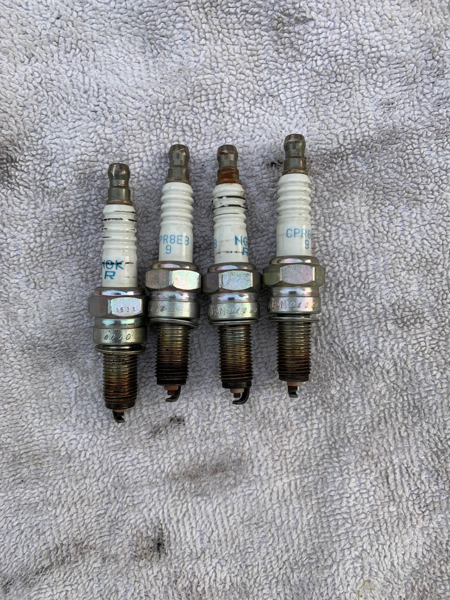 Übrigens ich habe die viel diskutierten Feuchtigkeitsspuren nicht entdeckt. Bis auf ein kleiner Flugrostpunkt auf einem Kerzenkopf ist nichts zu sehen. So sehen die Zündkertzen nach ca. 16500 km aus.