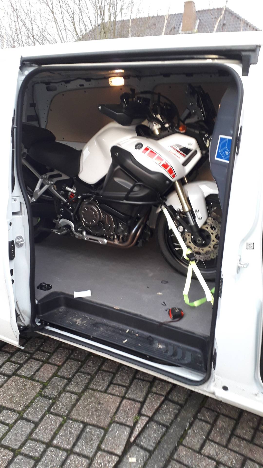 Unten muss man ja noch die Höhe der Schiene hinzuziehen. Also beim Verladen muss mindestens die Vordergabel ordentlich gestaucht werden, denn nach der lichten Höhe an der Heckklappe wird es ja ein wenig höher (aber nicht viel...).