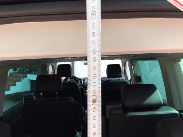 Musste auch gleich nachmessen. Bei meinem Transporter beträgt die lichte Höhe praktisch 130 cm und erhöht sich dann im Innenraum noch