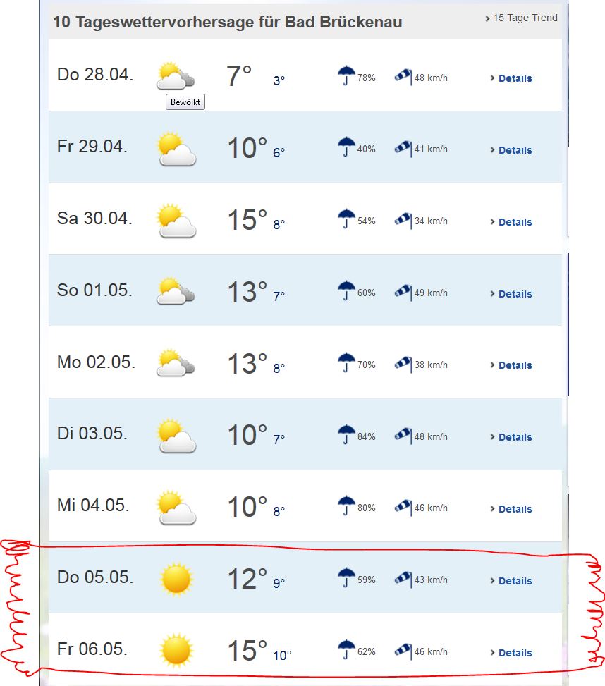 bezüglich Wetter bleibe ich mal Optimist: