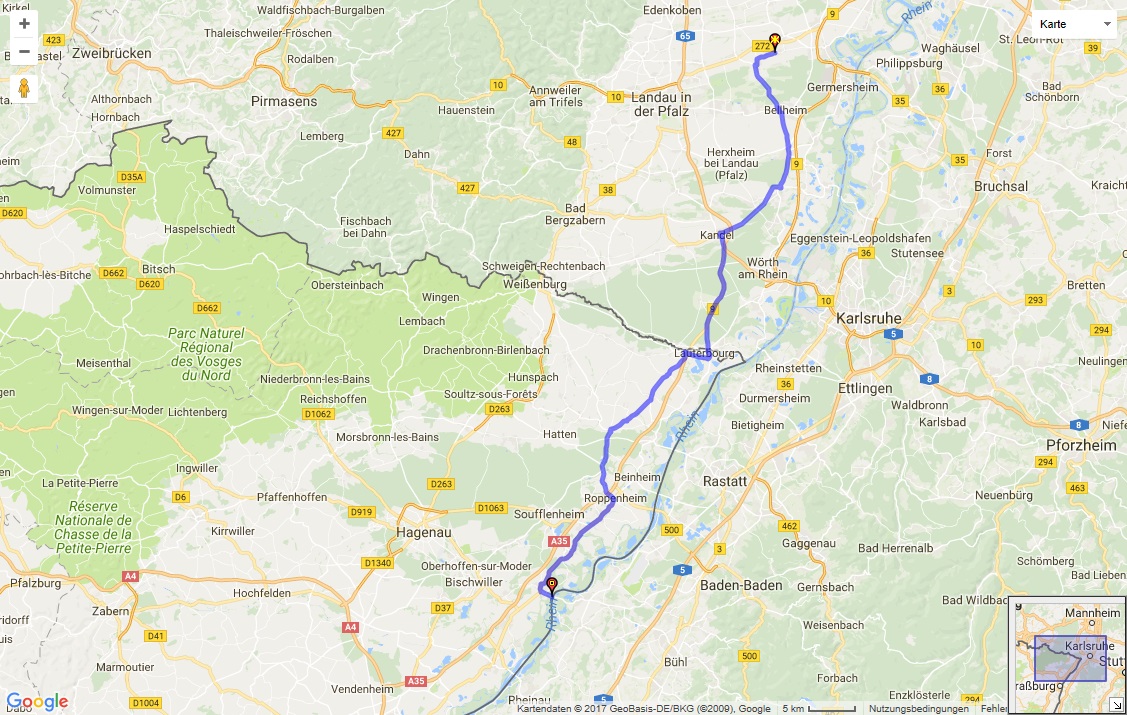 So würde ich zur Fähre Drusenheim anreisen.