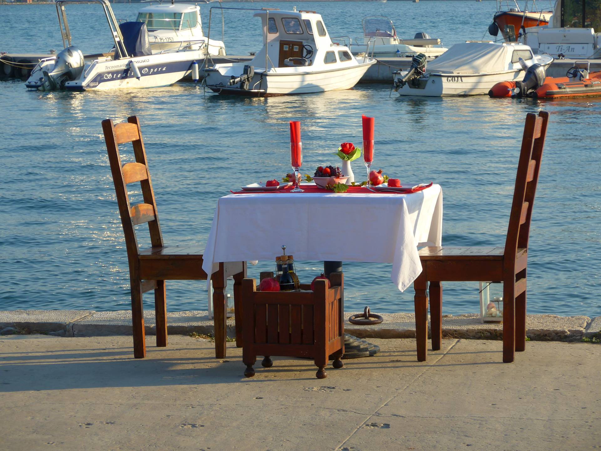 Das war bestimmt nicht in Deutschland. Denn so direkt am Wasser und statt Geländer nur zwei Laternchen ist bei uns wohl undenkbar. Gab's was zu feiern mit deiner Frau? Und wo war das? Fragen über Fragen - und unerhört, uns so ein Langmaul zu machen!