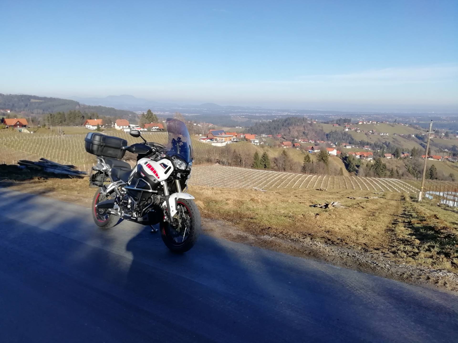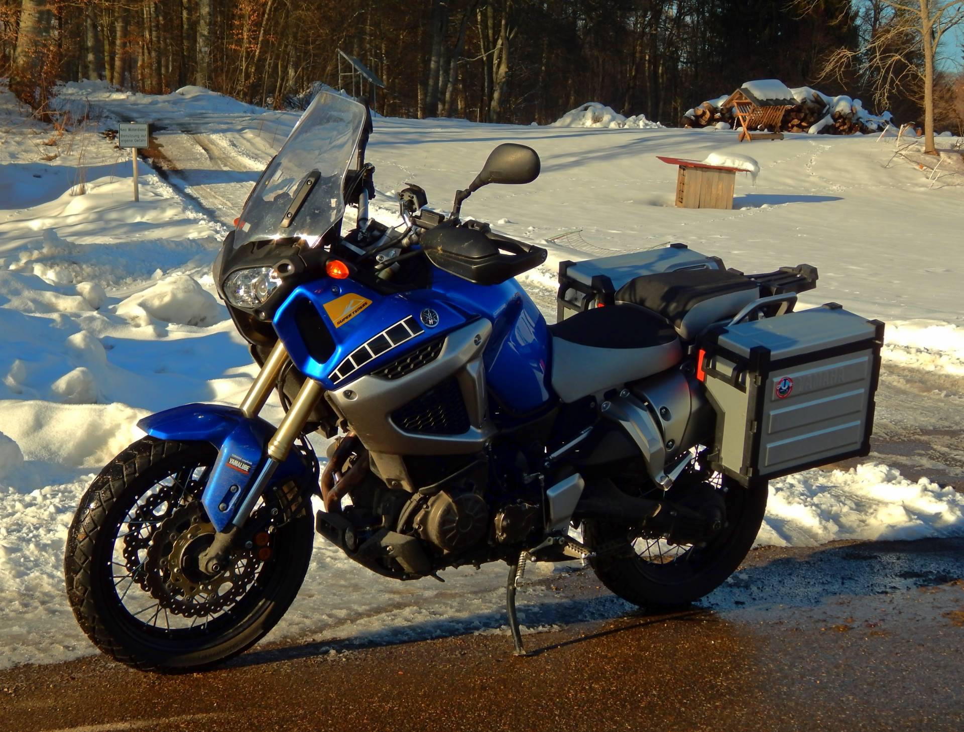 Zwar sind die wenigsten Sträßchen schneefrei, egal - schließlich fährt man ja XT, und bei so Kaiserwetter im wilden Süden ist es eine Gaudi durch die Winterlandschaft zu bollern.