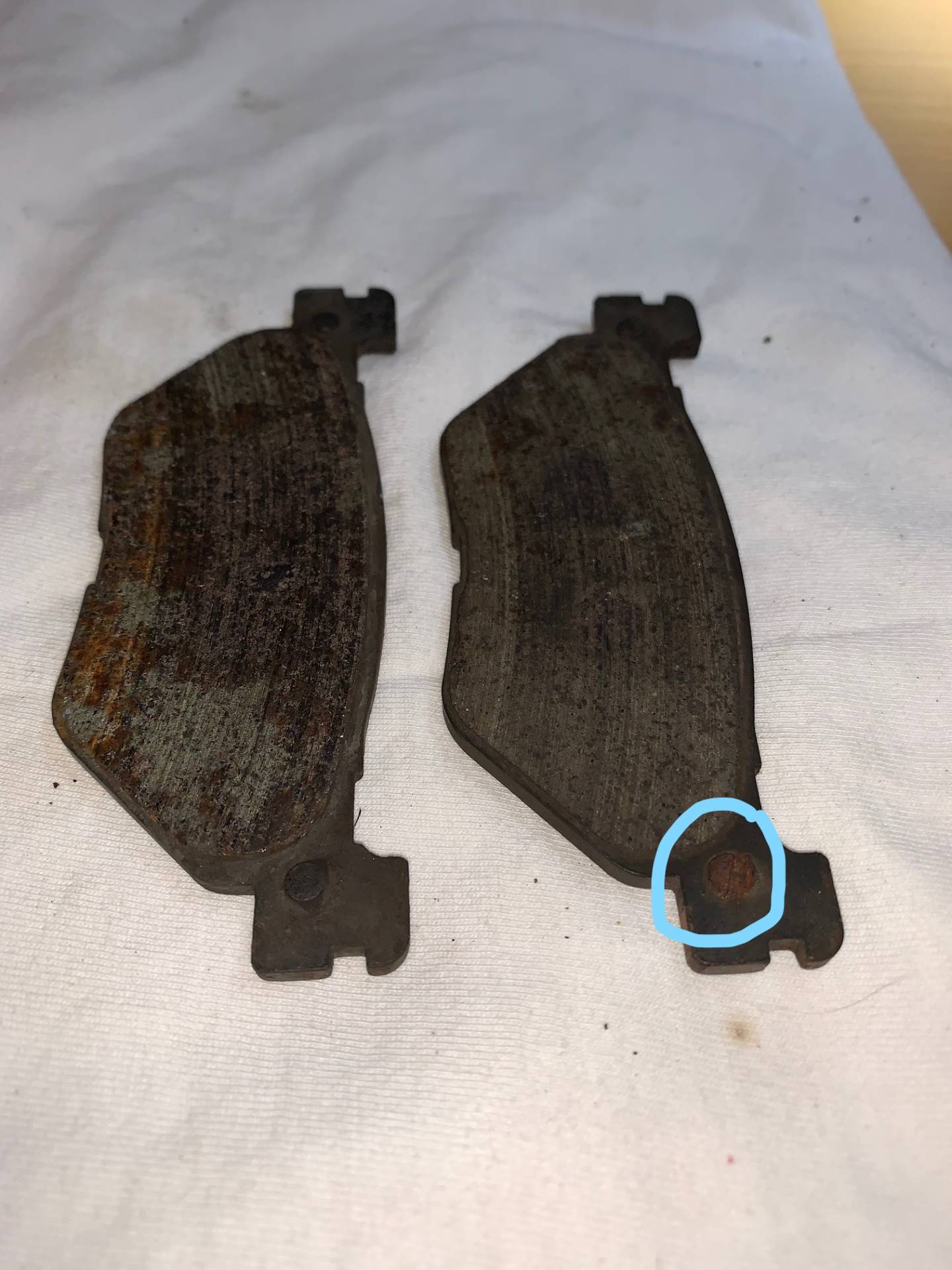 Dass die Beläge nicht mehr genietet werden, ist mir auch bekannt. Nieten gibt es aber trotzdem drauf, zumindest sieht es für mich so aus. ( S. Bild )