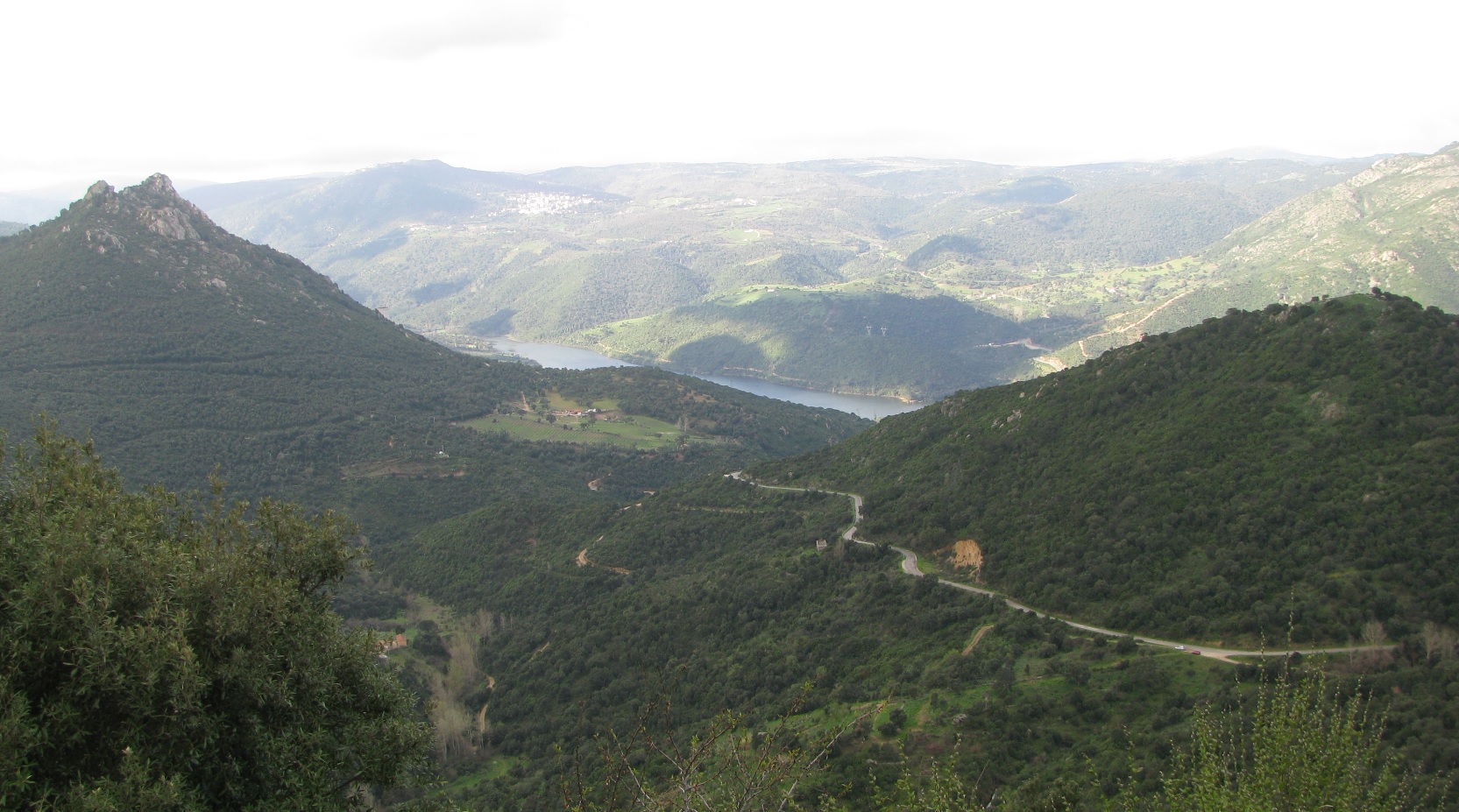 Unsere Route führte uns zunächst bei unterschiedlicher Bewölkung mit sonnigen Abschnitten über SS128 nach Norden. In Ollolai bogen wir auf die SP29 nach Südwesten ab. Nach 16 Minuten mussten wir die erste Pause einlegen. Die uns gebotene Aussicht auf den Lago Di Cucchinadorza mit umliegenden Bergland war gigantisch.