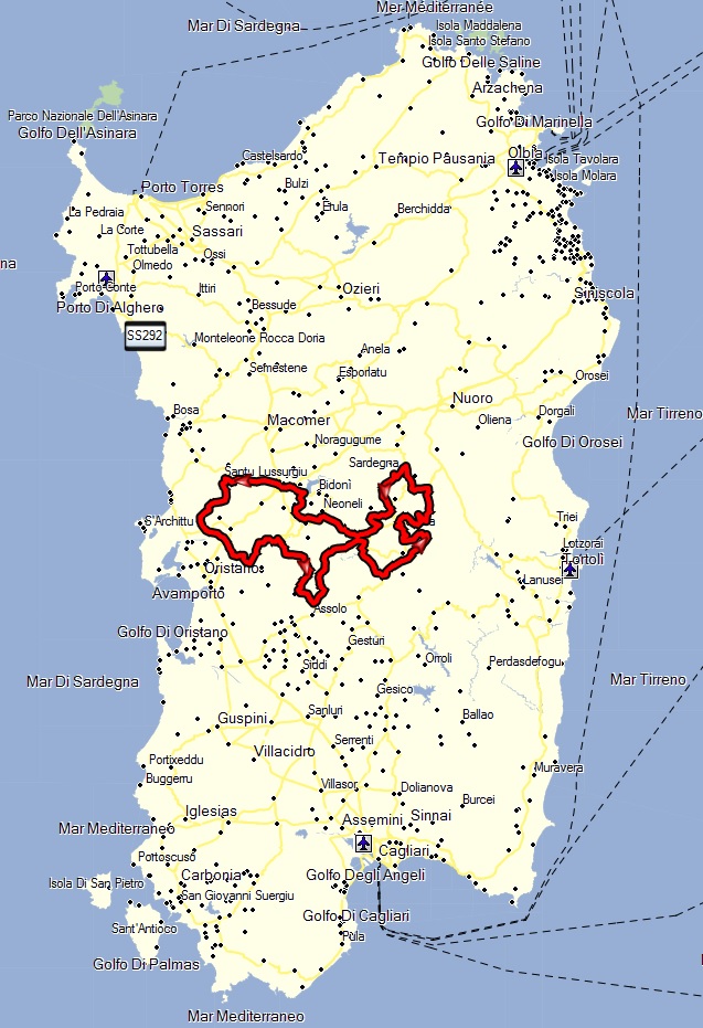 Die Strecke bis Santu Lussurgiu war total langweilig, denn wir durchfuhren eine Ebene mit geraden Straßen. Von Santu Lussurgiu bis Narbolia folgten dann wieder ein paar Kurven.