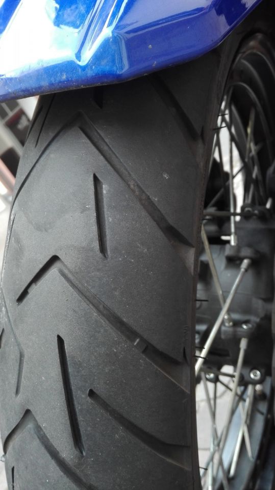 Der Hinterreifen ist allerdings nach 6.000 km total am Ende. Da geht nix mehr. Allerdings Soziusbetrieb, Gepäck schlechte Straßen, rauher Asphalt.