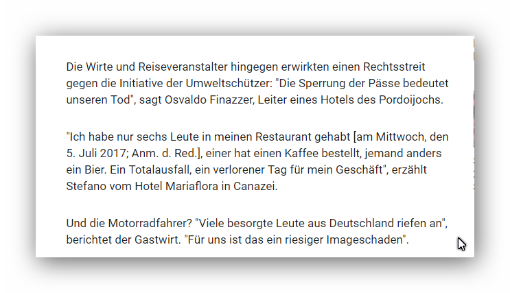 Die Tendenz ist doch mehr als klar; die temporäre Sperrung des Sellajochs nur ein erster Schritt, das wird ja in dem Artikel auch beschrieben.