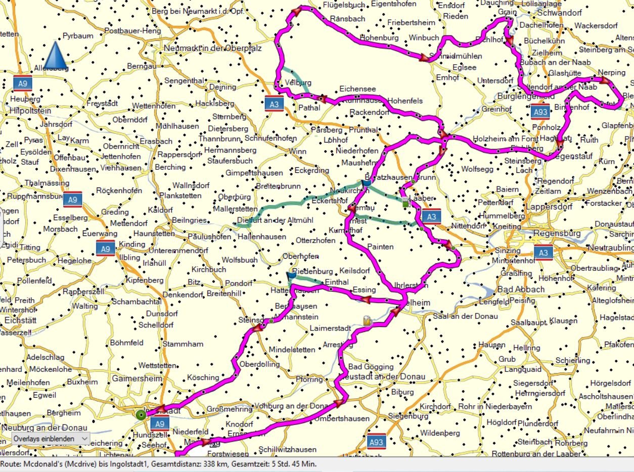 das sieht doch ganz interessant aus . Könnten wir evtl. am Samstag einen Treffpunkt in Neustadt/Donau ausmachen (da komme ich dann direkt über AB hin)? Dann den Achter fahren - ab Kehlheim würde ich mich dann wieder Richtung Süden ausklinken.
