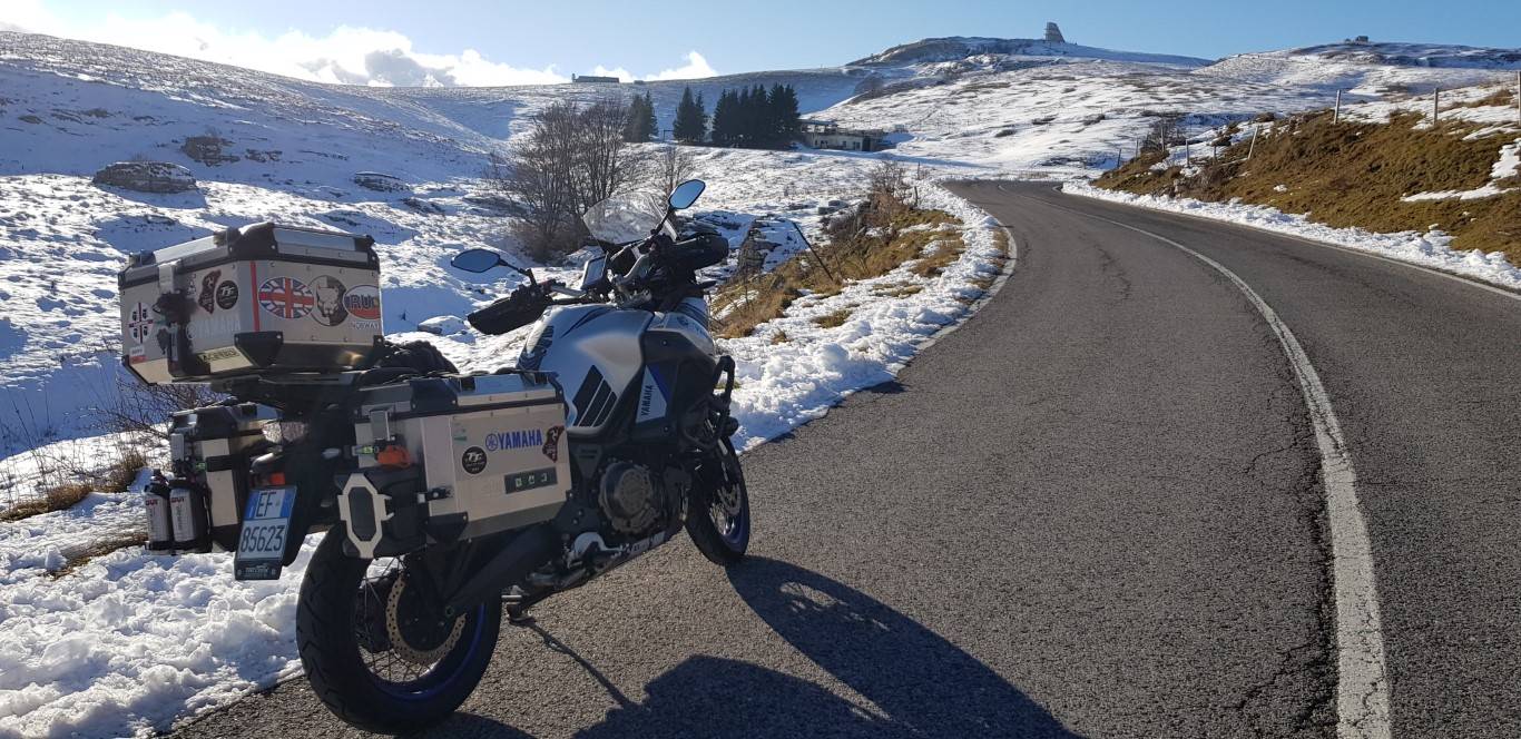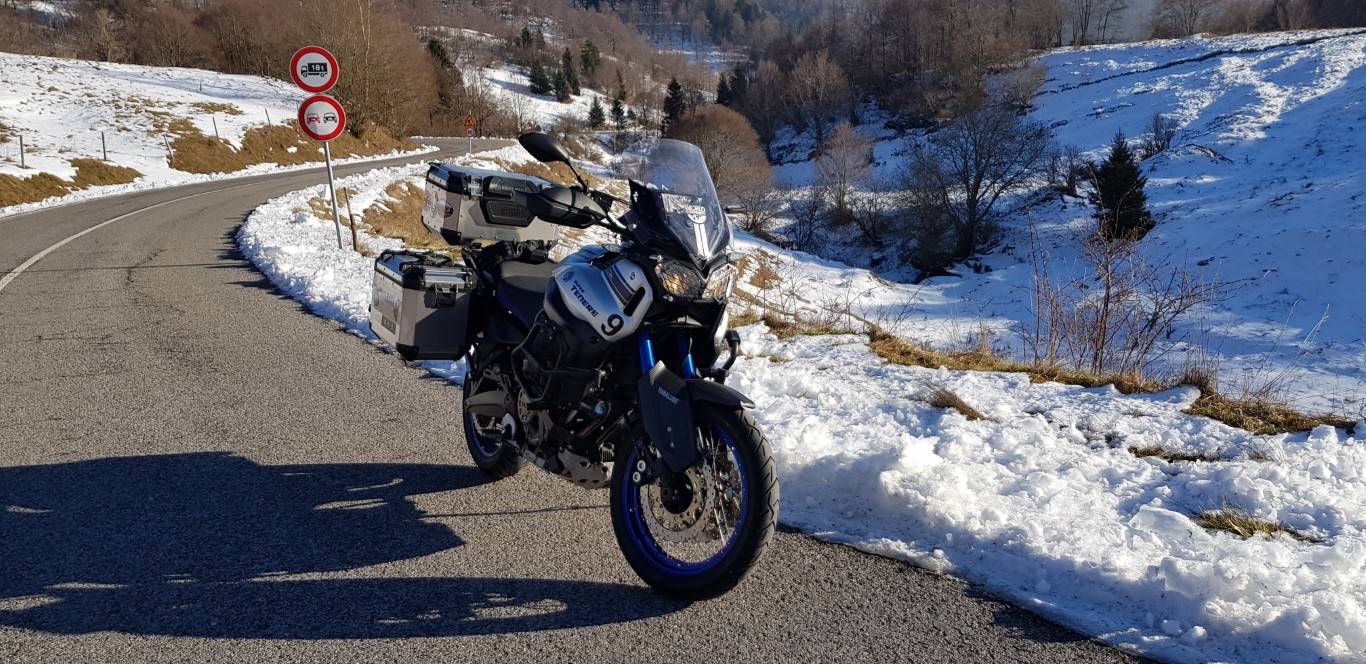 Mal wieder um die Häuser, vormittags Testfahrt auf RSV4 1100 Factory gehabt. Nachmittags gings dann Richtung Monte Lessini. Südseite war ok, Nordseite stellenweise vereist, also war Vorsicht angesagt. auf dem nach Hause Weg noch die üblichen Verdächtigen getroffen.