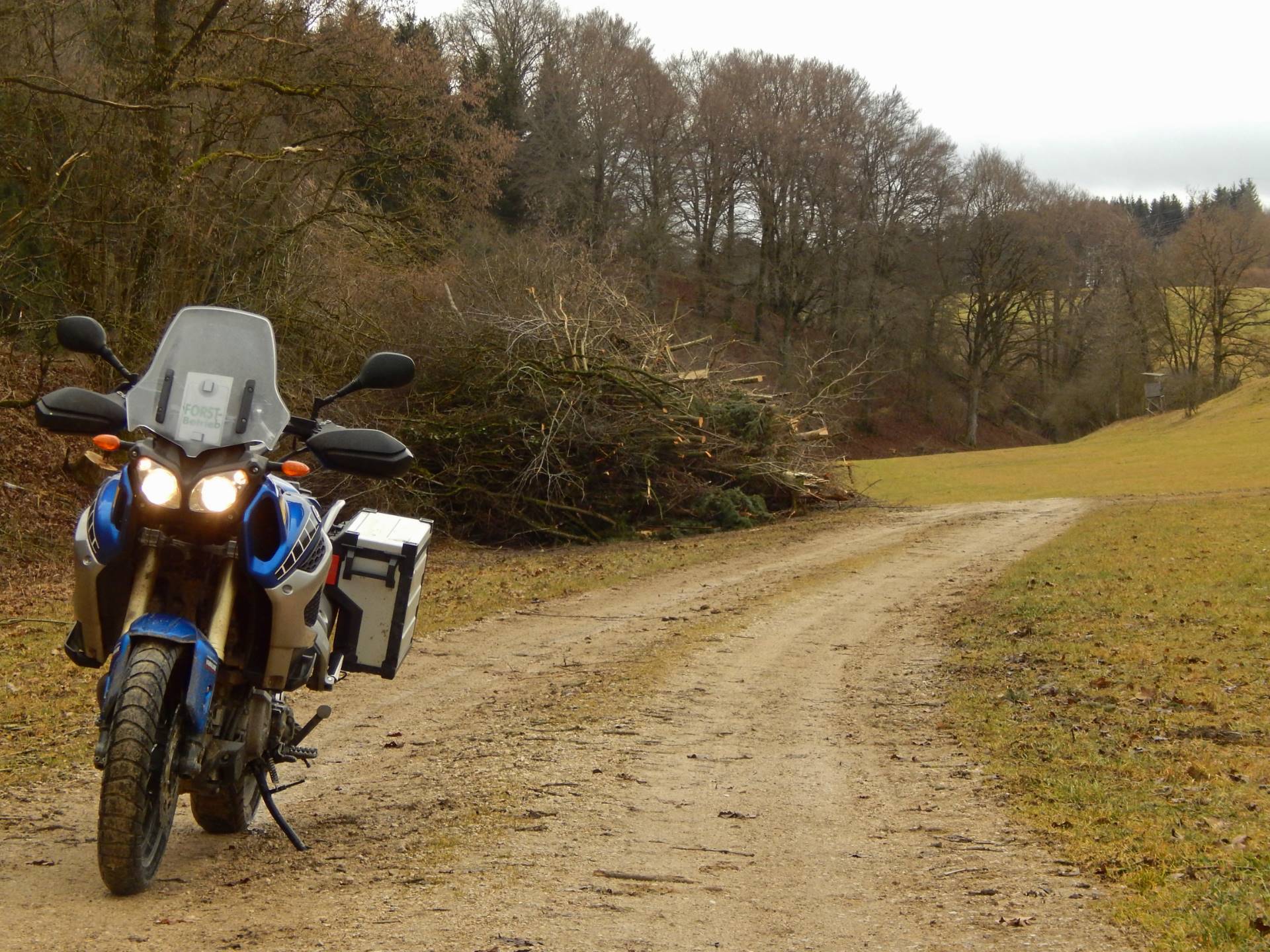 Dank Sabine wird das Brennholz billig, an jeder Ecke Haufen von aufgeräumtem Sturmholz auf der Alb.