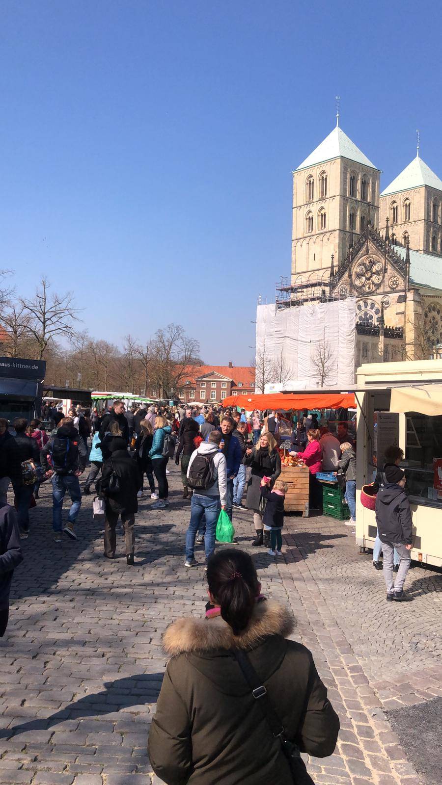 das sind weder Verwandte noch Freunde von mir da ich alleine unterwegs war. Außerdem kann man auf dem Bild sehr gut erkennen welchen Mindestabstand ich wärend meins 5 minütigen Aufenthaltes dort hatte. Verstoß gegen das Versammlungsverbot ? Dann sollten als erstes dringestens die Wochenmärkte geschlossen werden. Die Bürger stehen dicht an dicht an sämtlichen Ständen. Und nein ich war nicht dort, aber ein Kollege hat mir ein Bild gesendet welches er direkt aus sein Bürofenster geschossen hat. Das was ich dort gesehen habe war echt erschreckend. Das sind Bürger die sich an nichts halten. Die kann ich genauso gut leiden wie Moralapostel die ständig mit erhobenen Finger durch die Gegend laufen.