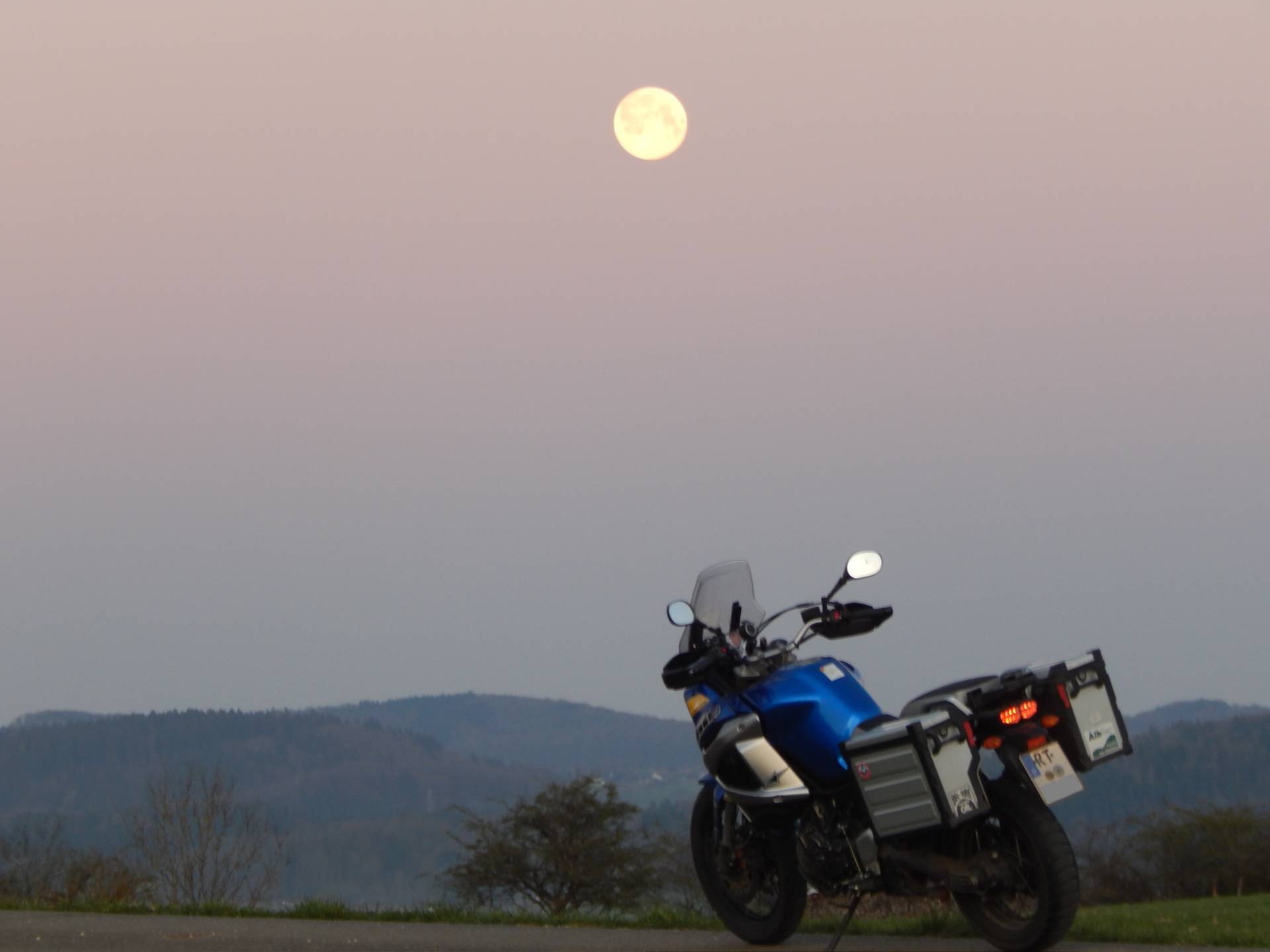 Heute morgen kurz vor Sonnenaufgang Richtung Westen geschaut, geht der Vollmond gerade unter.