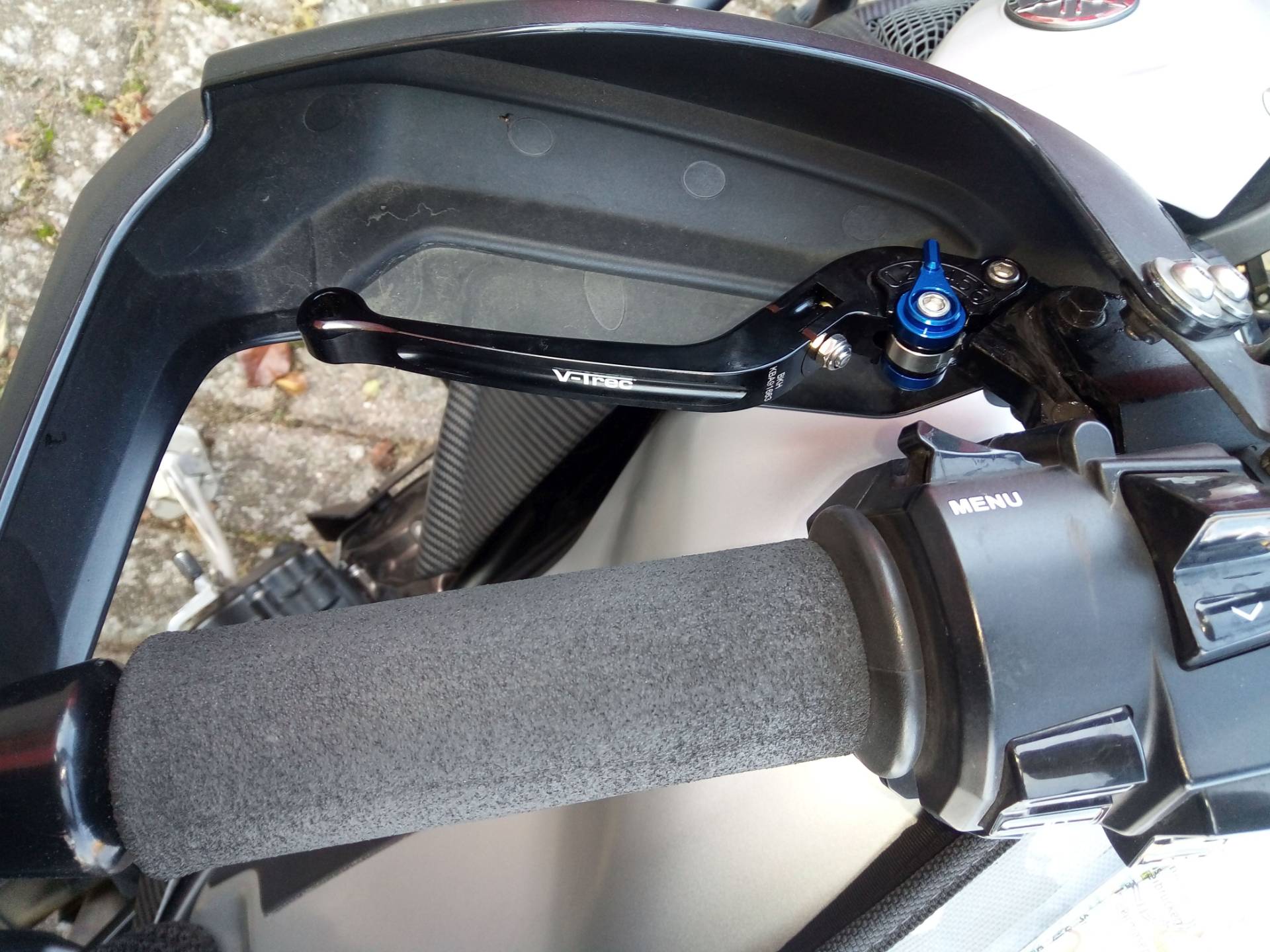 Ich habe Pazzo-Griffe, OTR-Zylinder.... und um bei Passfahrten die Hand zu entlasten noch einen Quickshifter....