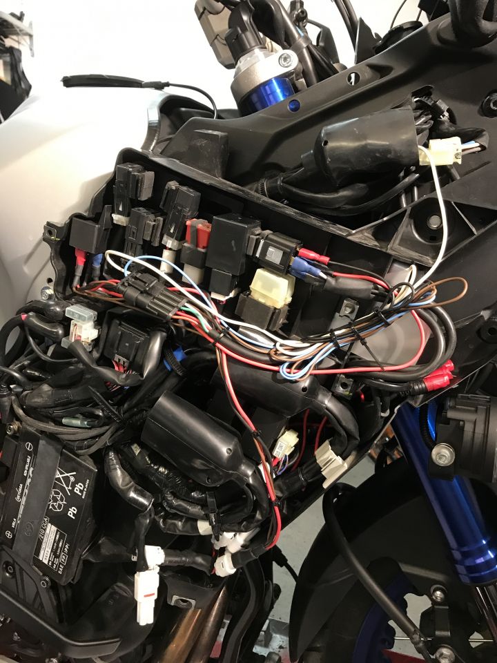 . Irgendwie, war's so doch einfacher, als bestehende Kabel aus einen Schlauch rausfummeln, aufschneiden und wieder zusammenflicken. Die Vorarbeit dazu habe ich ja schon letztes Jahr beim Einbau von Navi und Tankrucksack mit dem 3-poligen 3-fach Stecker gemacht