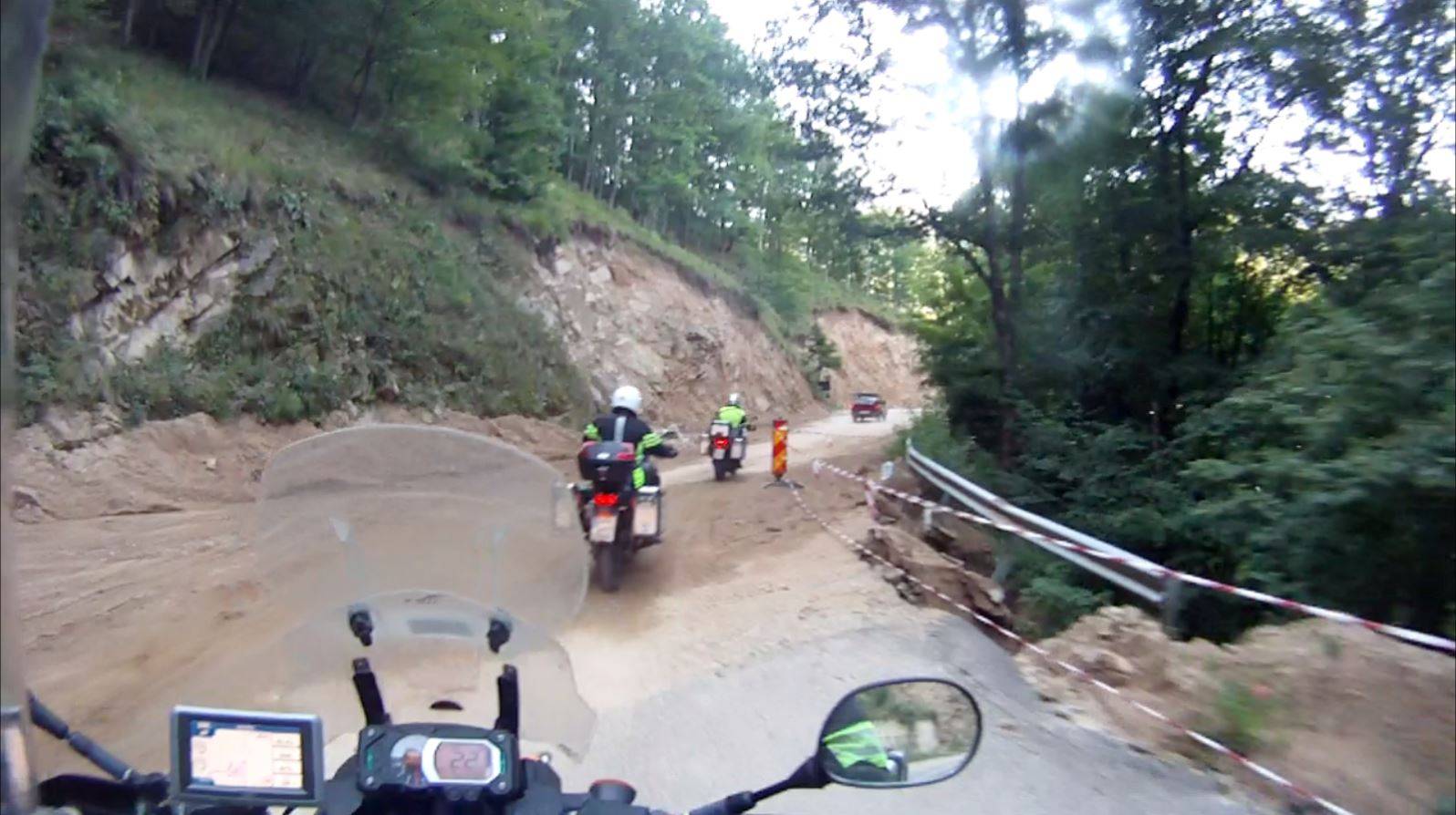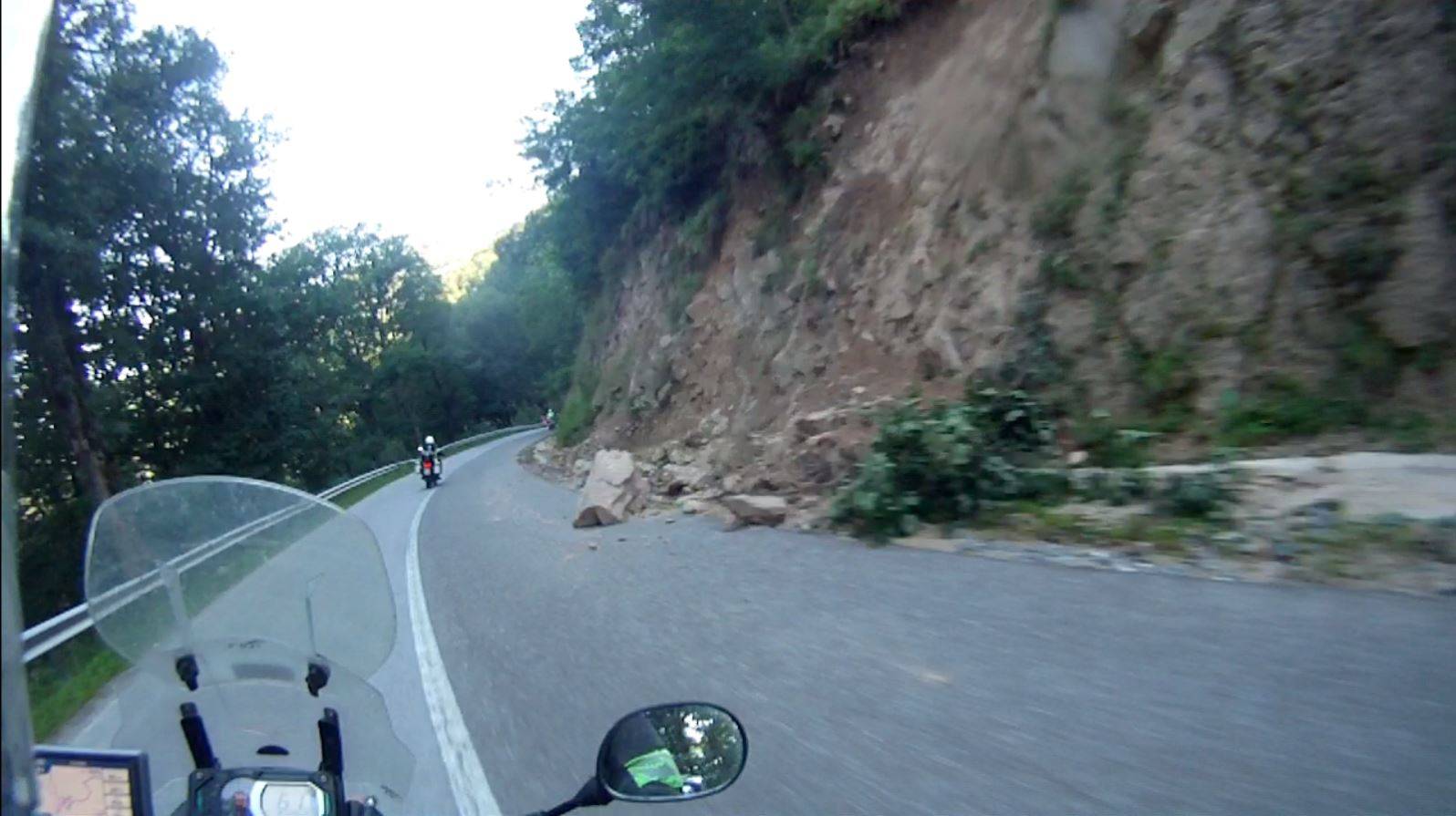Die nächsten 6km zur Transalpina waren abenteuerlich. Die Straße war relativ neu, die steilen Böschungen waren aber nicht gesichert. Der Starkregen der letzten Wochen hat daran stark genagt. Immer wieder war Erde, Steine oder Grünzeug auf die Straße gerutscht. Aufgrund des geringen Verkehrsaufkommens, kamen wir problemlos hinunter.