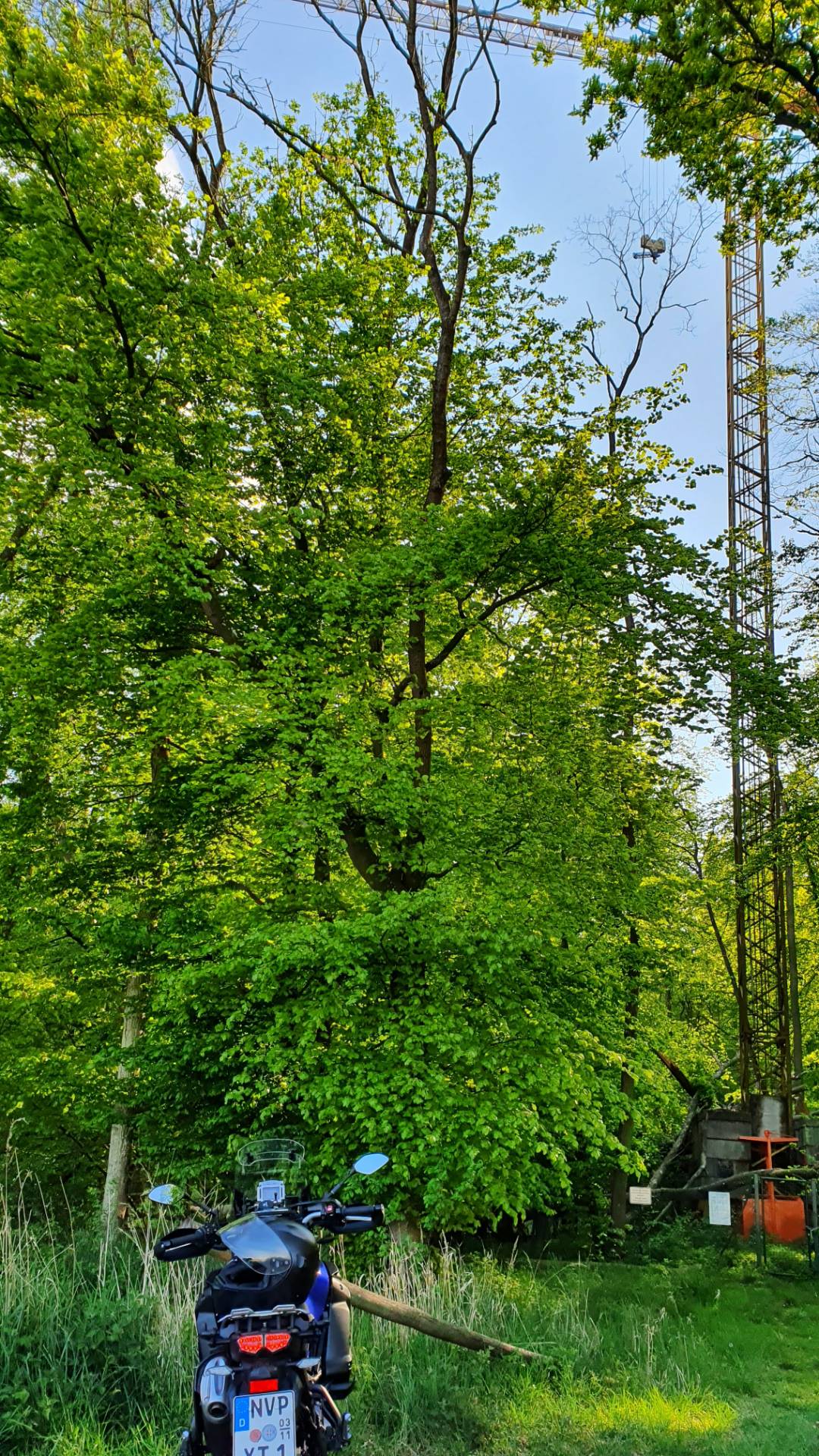 ca. 0,5km weiter an einem unbessestigten Weg im Wald ein seit Jahren stehender Kran. Ich dachte immer es wäre irgendeine geheime Militärbaustelle. Wird hier die Fauna und Flora beobachtet - keine Infotafel