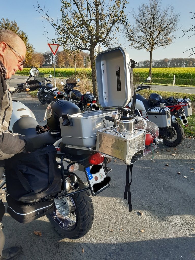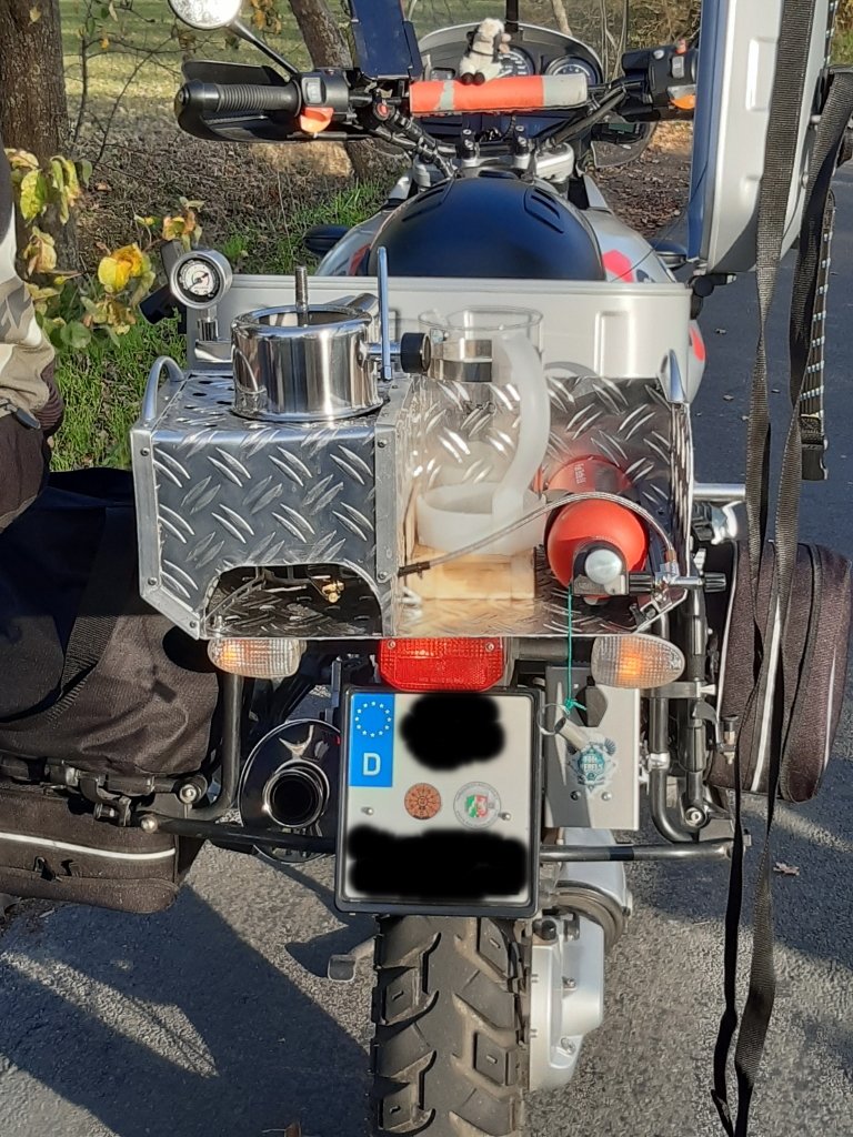 Und ich hatte beim hinterherfahren schon überlegt wofür die komischen Aluprofile unten am Topcase wohl sein könnten