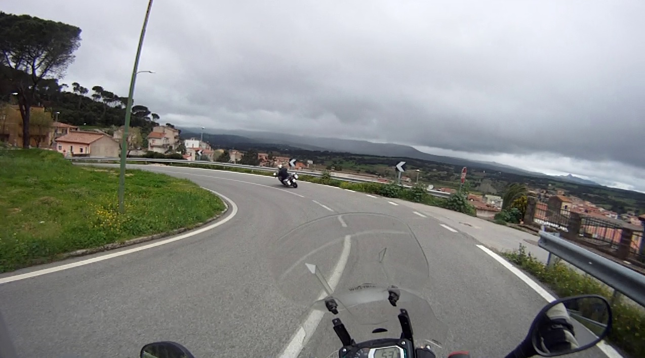 Wir folgten der kurvigen und bergigen SS389 weiter nach Norden. Als wir durch Monti fuhren, sah ich im Westen eine Regenfront mit gut sichtbaren Starkregen. Unsere Route sollte uns weiter nach Tempio führen, das liegt aber im West. Mein geliebter Monte Limbara war scheinbar wieder Auslöser des Regens.