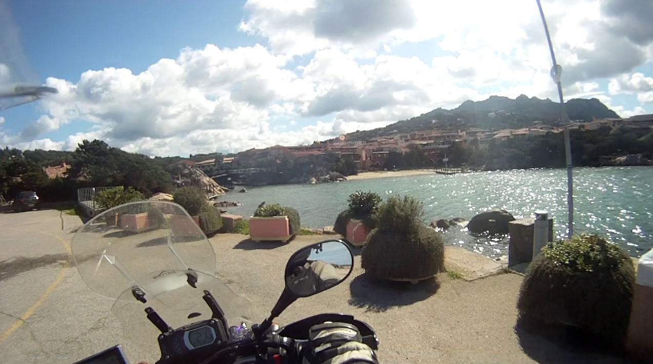 Jetzt musste Zeit vernichtet werden. Wir fuhren zunächst etwas kreuz und quer durch die schöne hügelige Gegend. Über die SS427 und SP59 erreichten wir Baja Sardinia. Man war dieser Ort tot, fast alle Hotels waren geschlossen. Eine Bar war geöffnet. Cappuccino-Einwurf war angesagt.