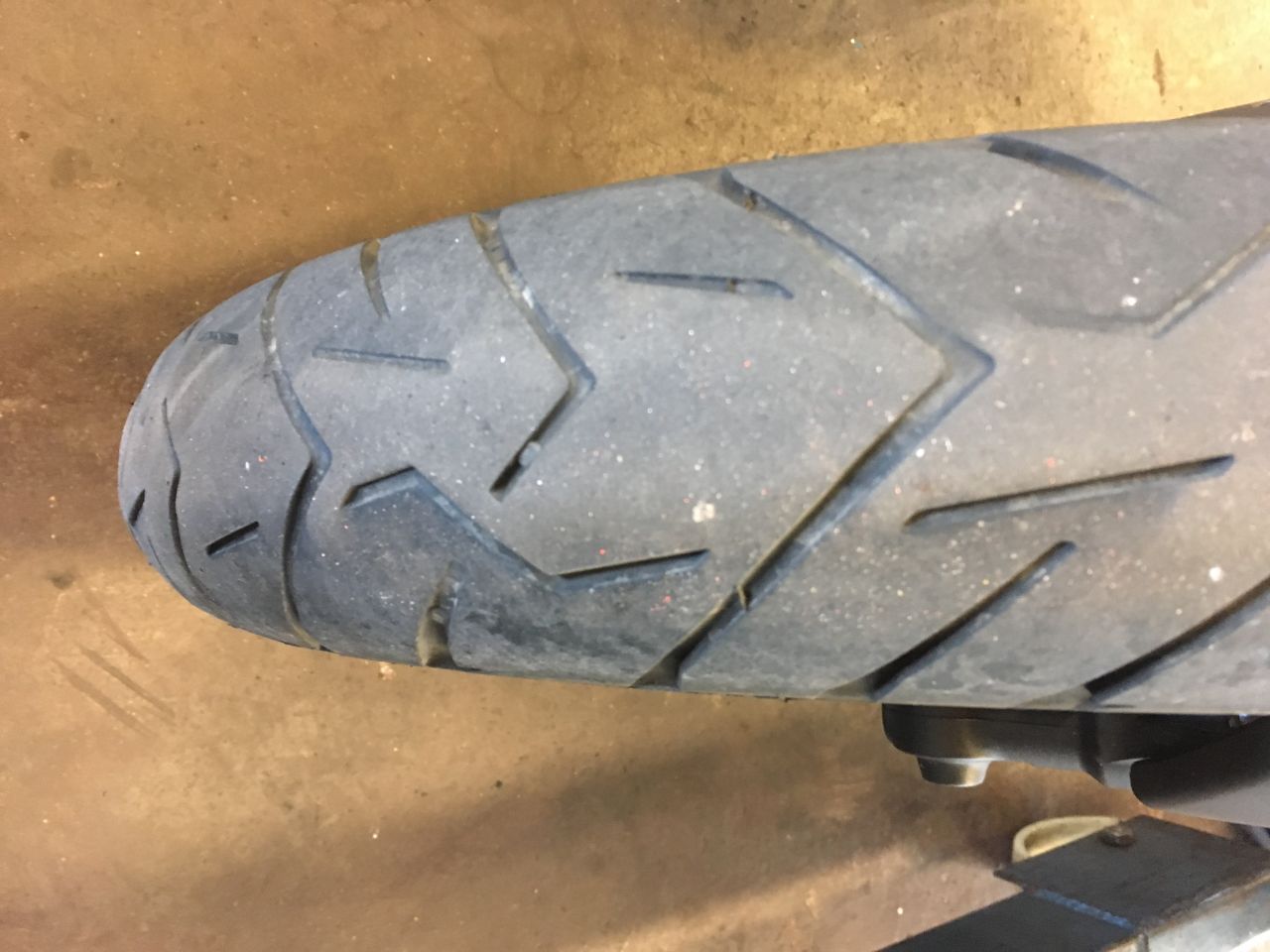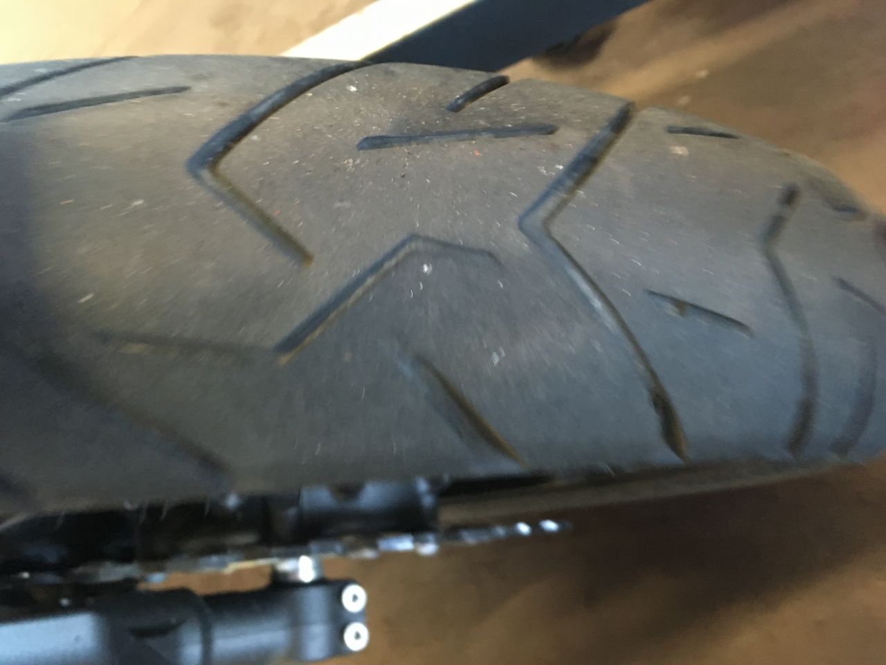 In der Mitte der Lauffläche noch recht viel Gummi seitlich davon wenig oder nichts. Klar, das kommt auch vom in die Kurven rein bremsen. Aber ansich habe ich meinen Fahrstil nicht derart verändert das es solche Auswirkungen hat. Nicht so schlimm. Habe jetzt den Michelin Pilot Road 4 montieren lassen. Es wird sich zeigen wie Dieser sich macht.